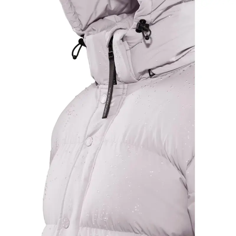 Composition: 100% полиамид Манжета: 80% полиамид, 20% эластан Наполнитель основного тела: 90% гусиный пух, 10% гусиные перья Украшение наполнитель: 100% полиэстер