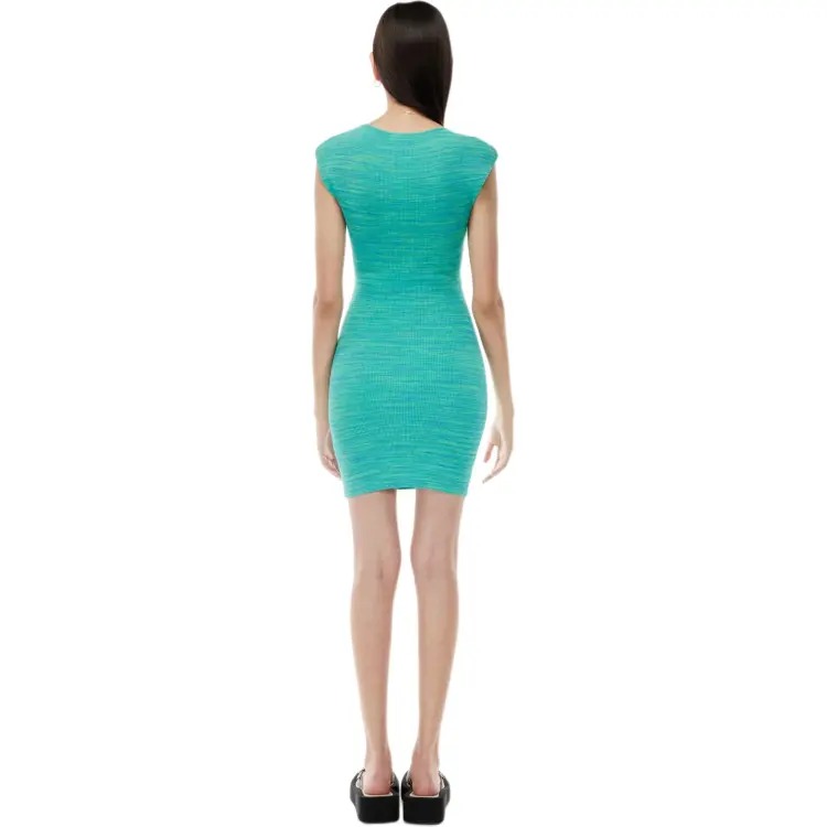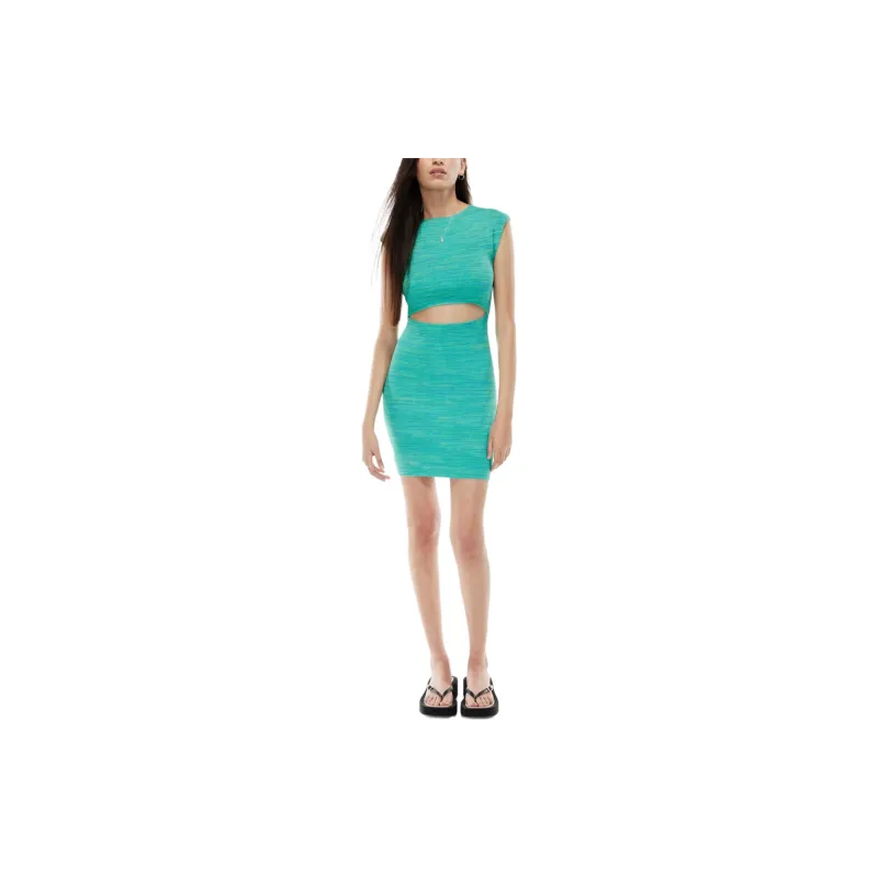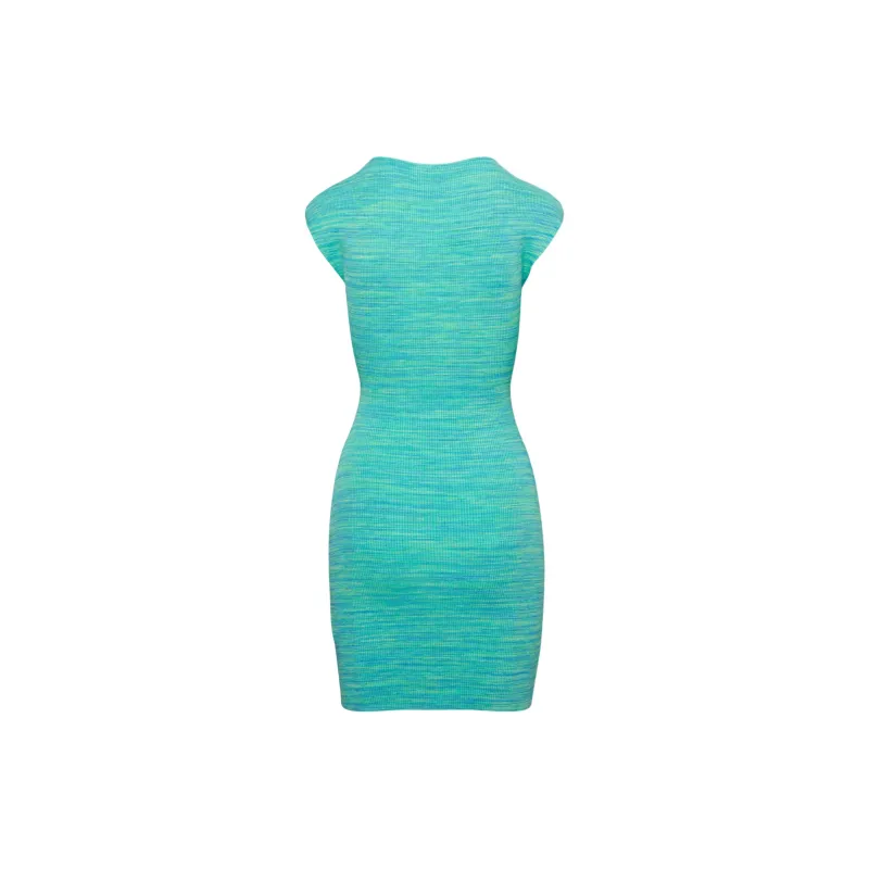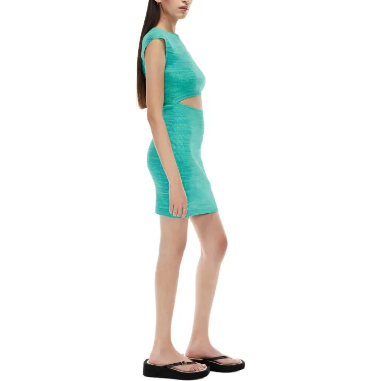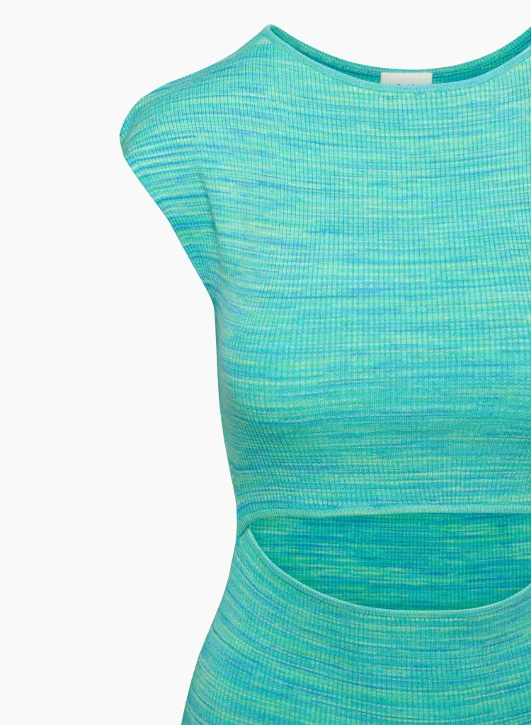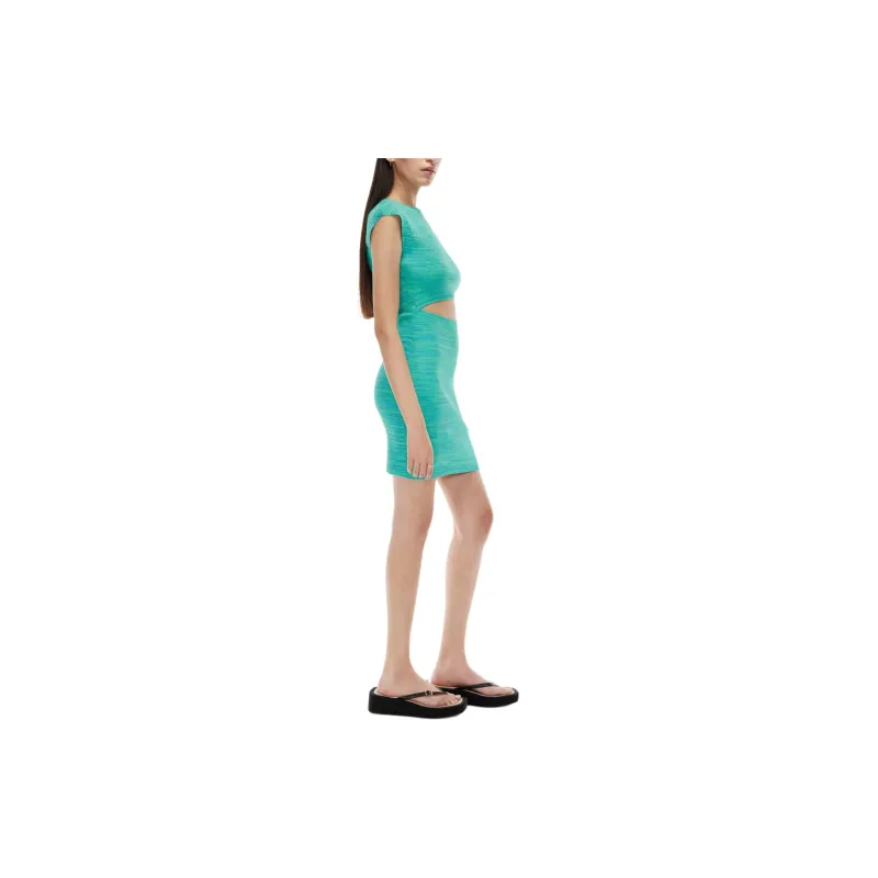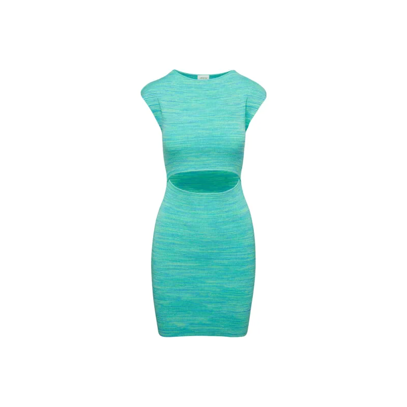 ARITZIA WILFRED Бесплатно Cut Out KNIT Мини Платье Короткий Рукав Платье Женские Космос Dye Aqua Бирюзовый Вода Циановый
