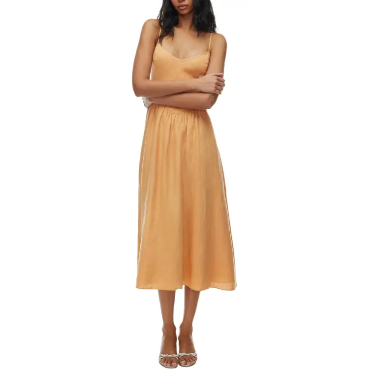 ARITZIA WILFRED Influence Linen Maxi Dress Slip Dress Women's Soft Apricot Peach