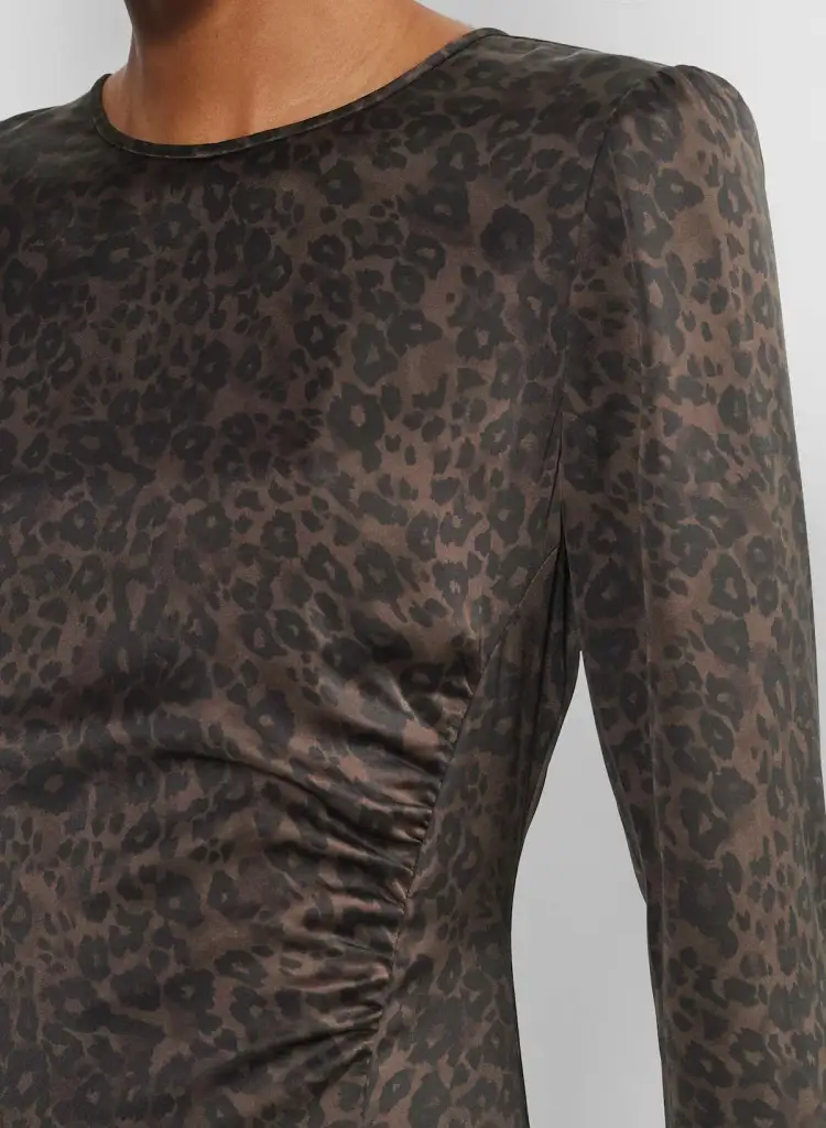 ARITZIA WILFRED Melita Satin Dress Long Sleeved Dress Women's Cocoa Bean Black Cacao Brown Black