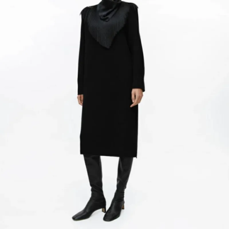 ARKET FW23 Длинное платье с длинными рукавами женское черное