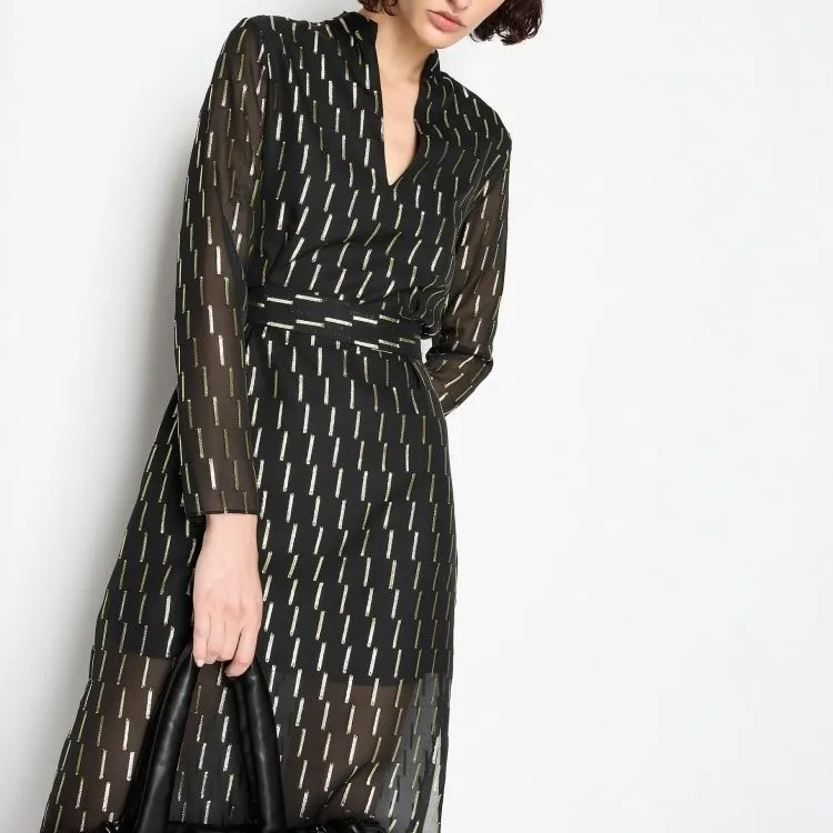 ARMANI EXCHANGE Черное Женское Длинное Платье с Рукавами