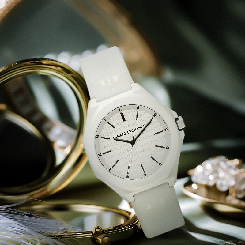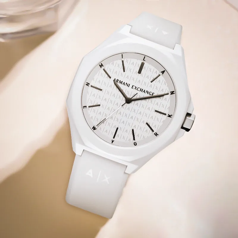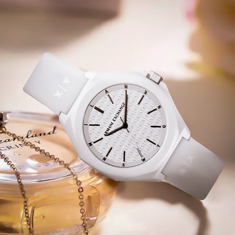 ARMANI EXCHANGE Watch Кварцевый механизм Силиконовый ремешок Белый циферблат Унисекс Нишевый подарок Коробка