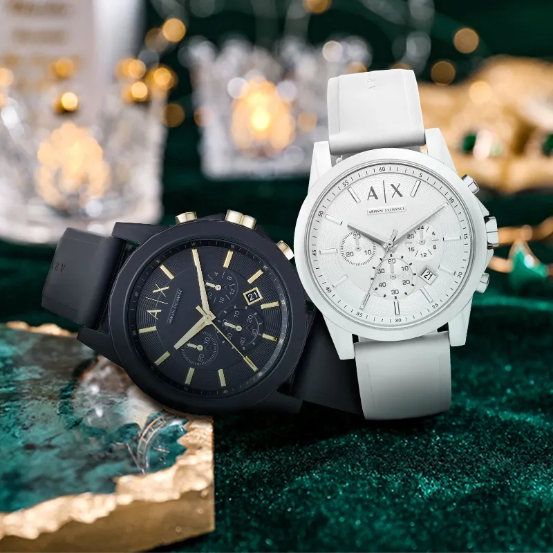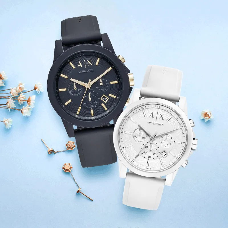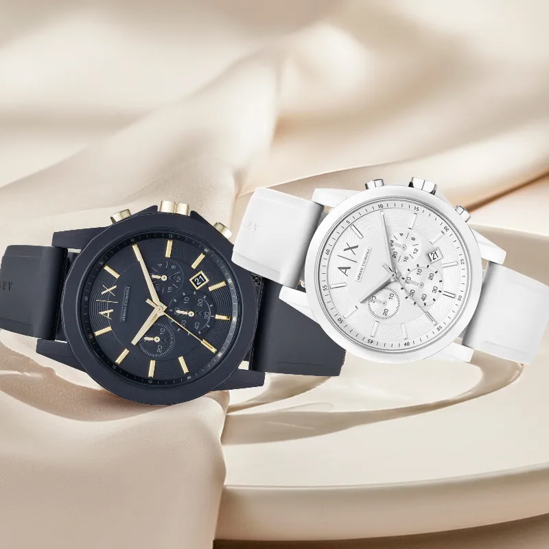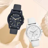 ARMANI EXCHANGE AE ARMANI Наручные часы Кварцевый механизм Силиконовый ремешок Белый циферблат Унисекс Коробка