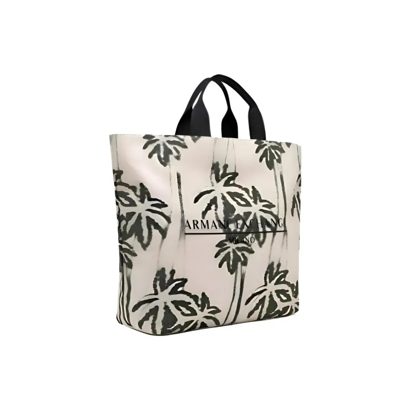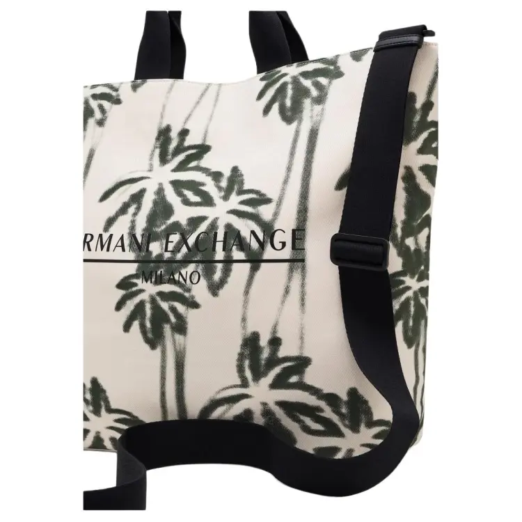ARMANI EXCHANGEAE Хлопок Тоут Сумка Сумка для покупок Сумка Большая Мужская Натуральный Белый и Лесной Зеленый
