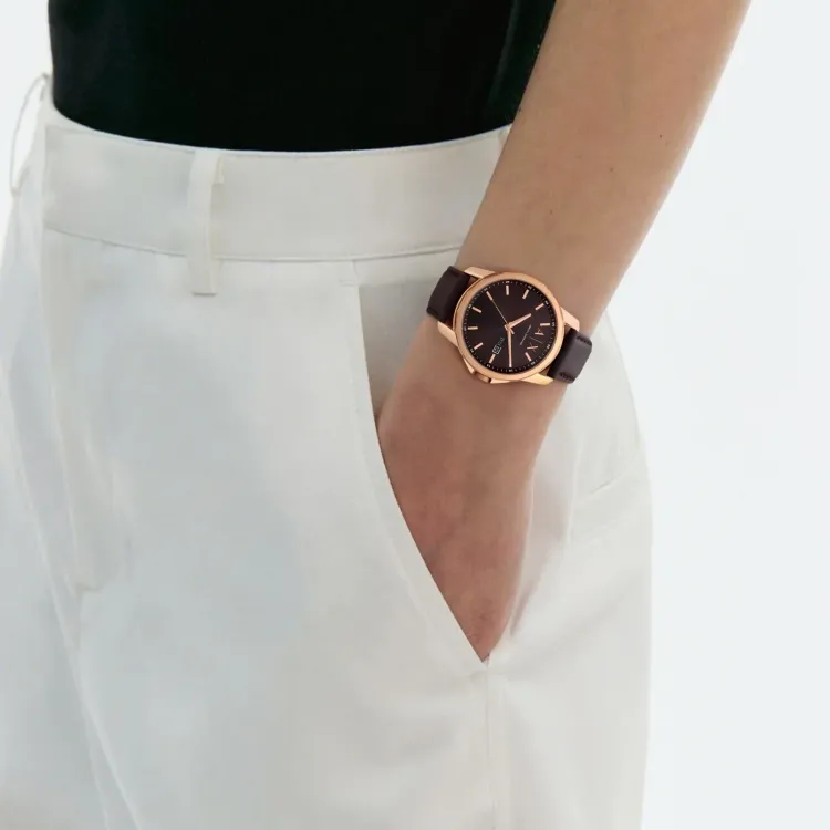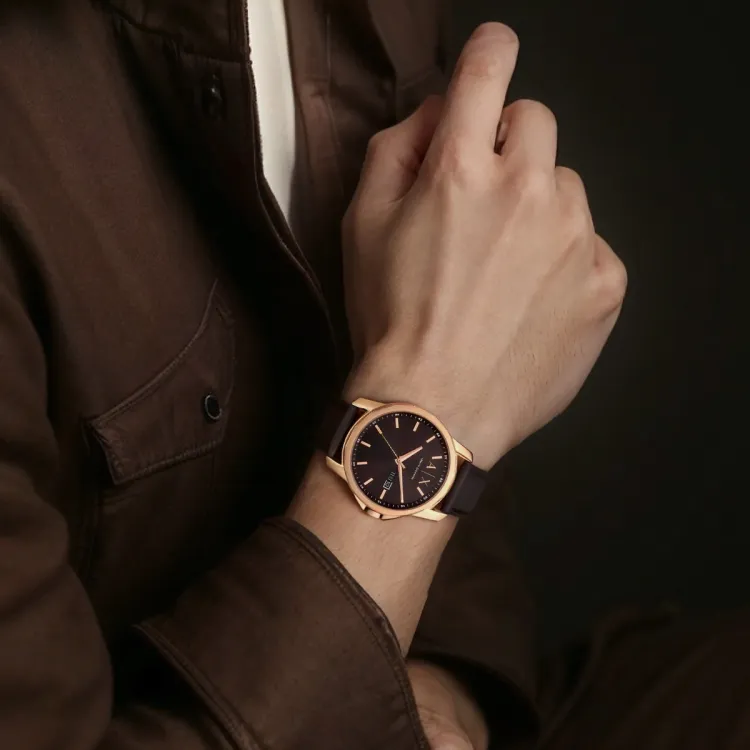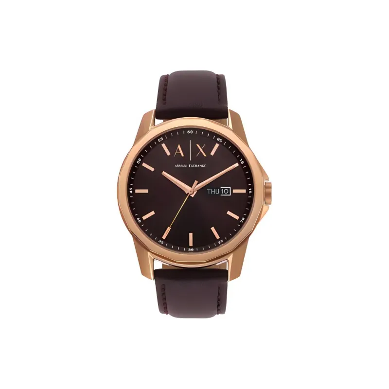 ARMANI EXCHANGEAE Men's Watches Кварцевый механизм ремень из натуральной кожи 44 мм коричневый циферблат