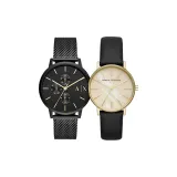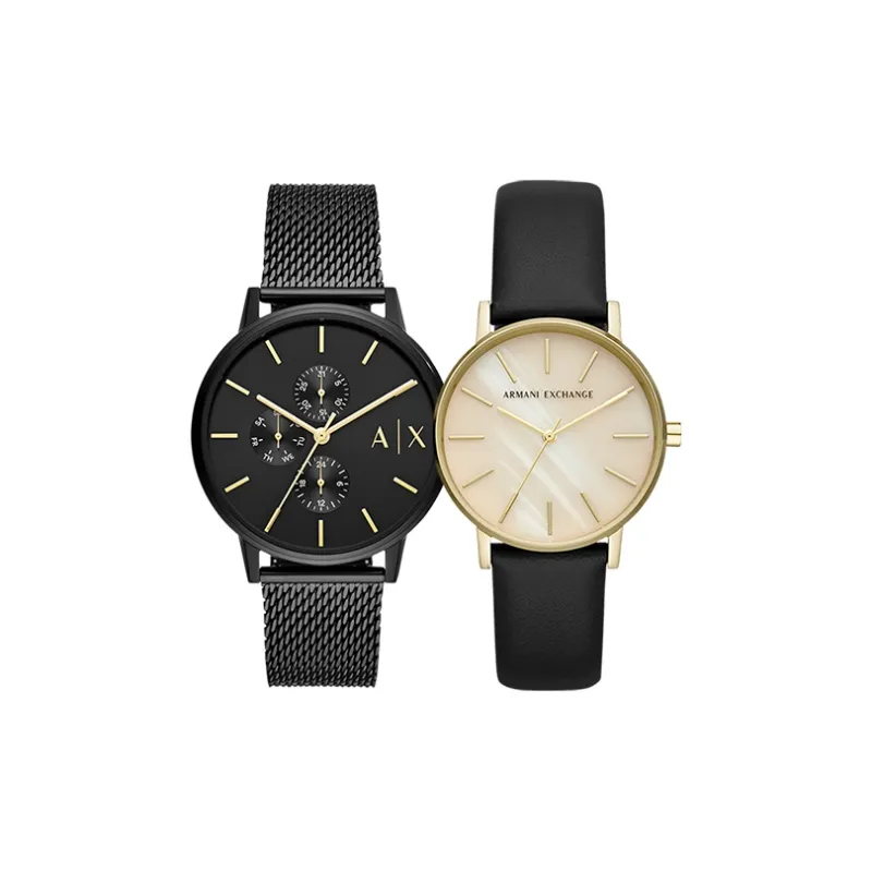 ARMANI EXCHANGEAE Часы Кварцевый механизм Кожа Нержавеющая сталь Ремешок 42 мм Черный циферблат Унисекс