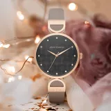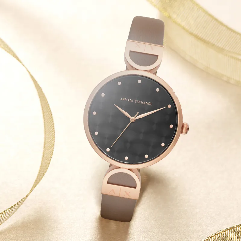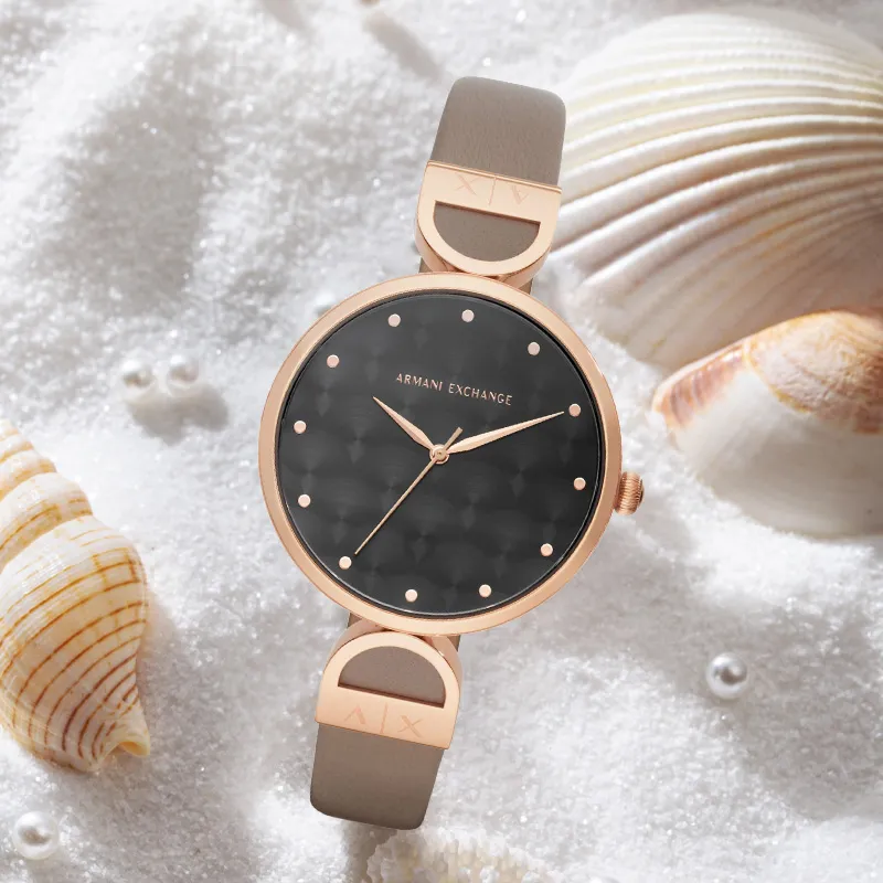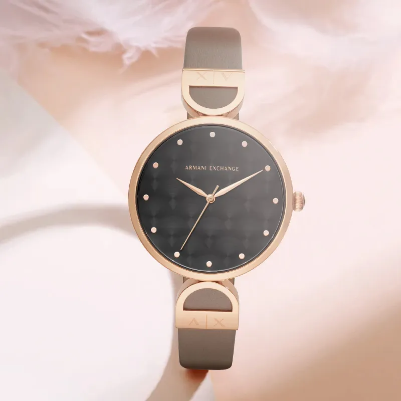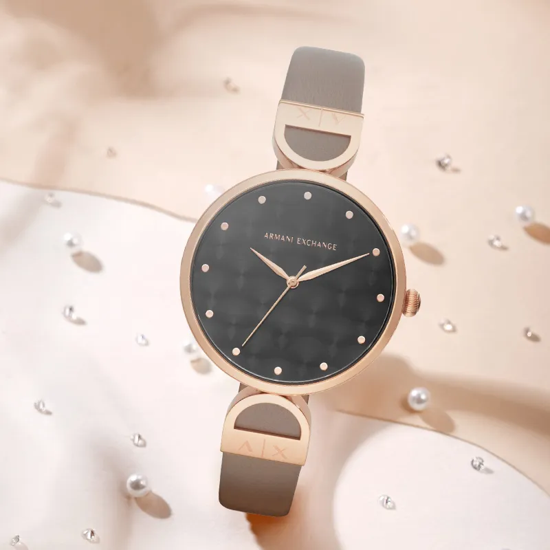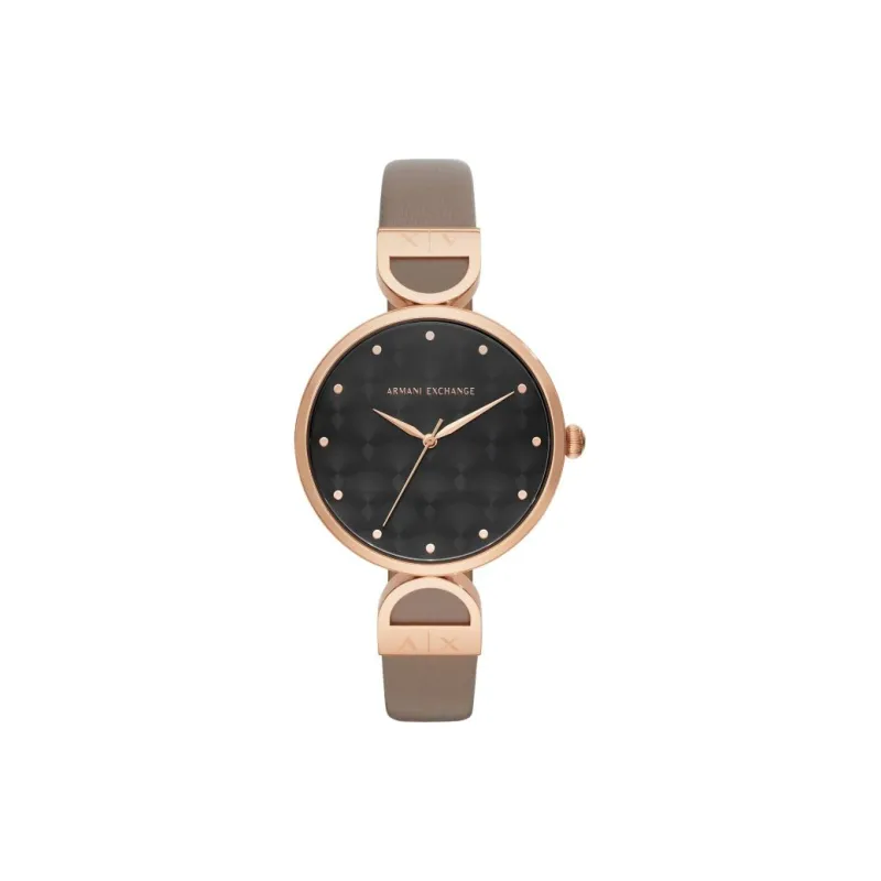 ARMANI EXCHANGEAE Наручные часы Кварцевый механизм Кожаный ремешок 38 мм Черный циферблат Женские часы