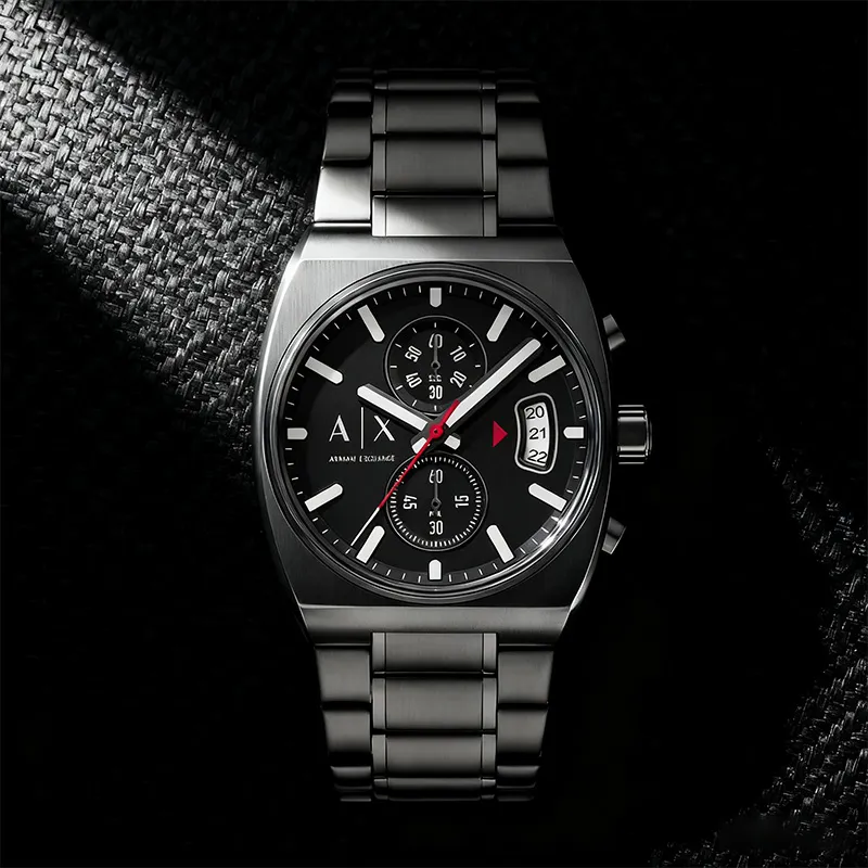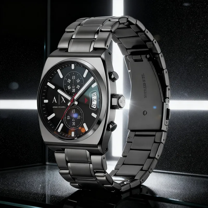 ARMANI EXCHANGEAE Мужские часы Кварцевый механизм Стальной ремешок Черный циферблат