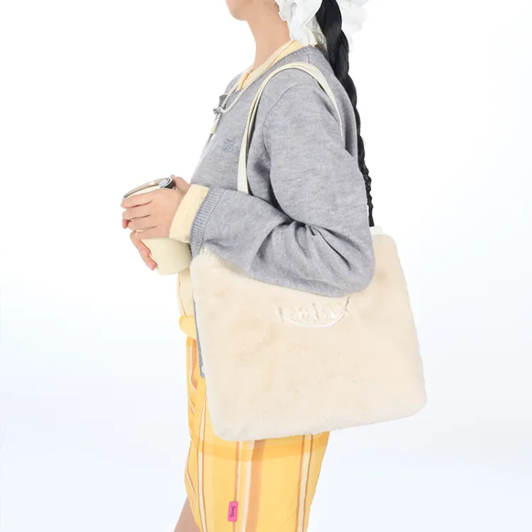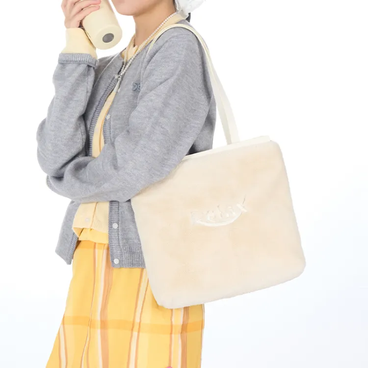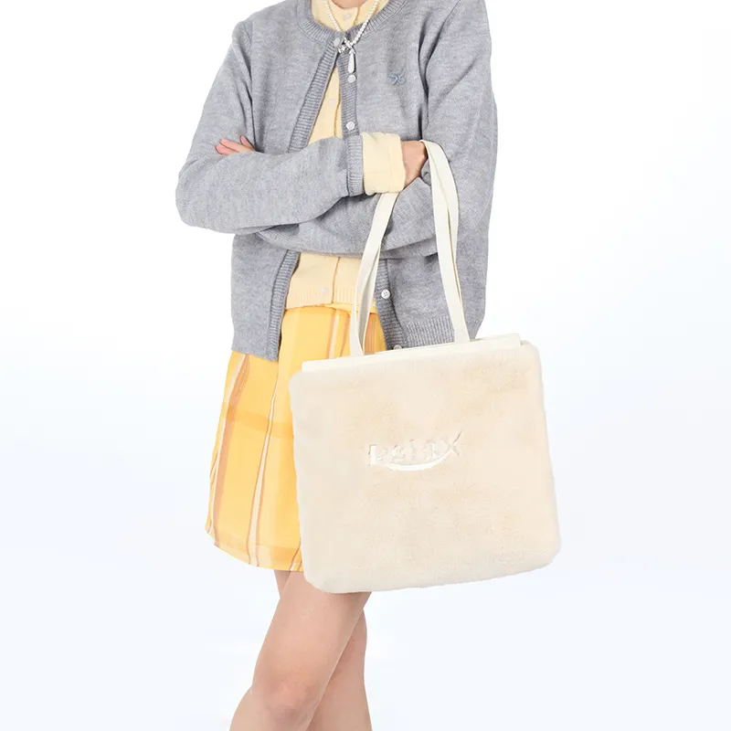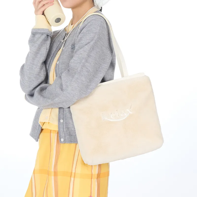 Art Traces Полиэстер Сумка-тоут Сумка-тоут Плюшевая Сумка Сумка через плечо Женская Молочно-белая