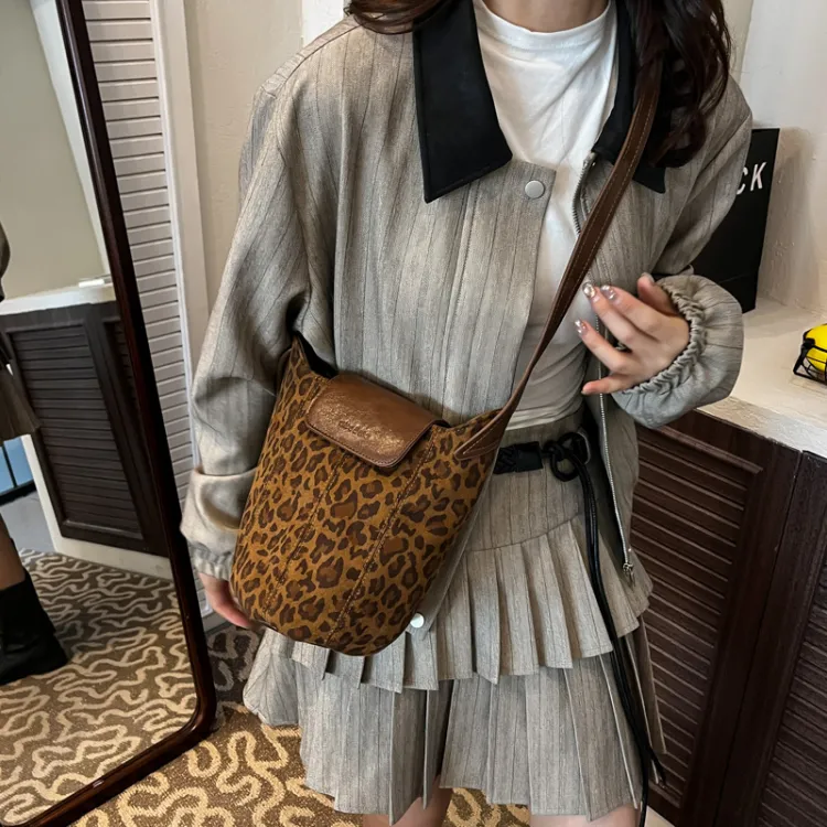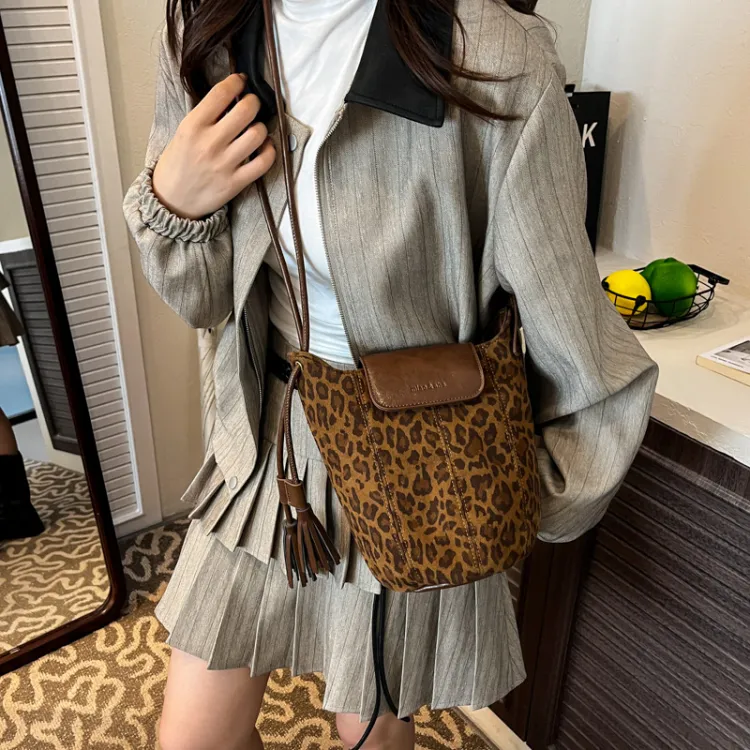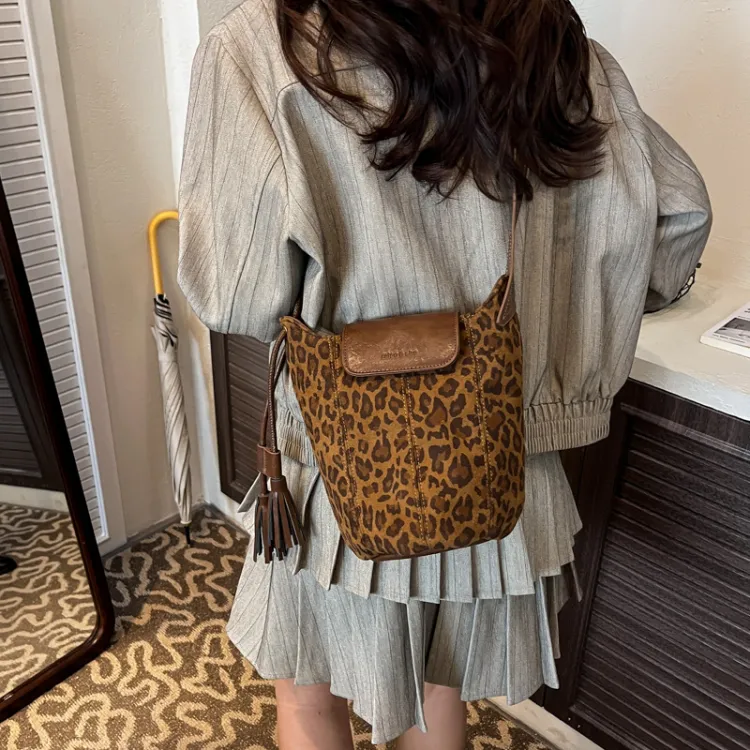 ARTEC Замша Сумка через плечо Стандартная Унисекс Коричневый Кофейный Леопардовый принт