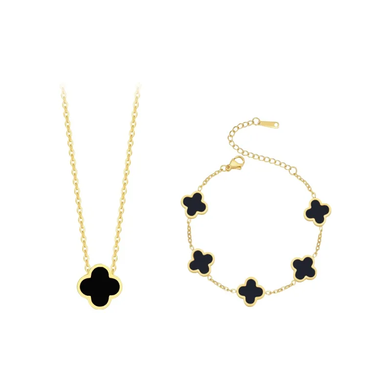 Браслет с четырехлистным клевером [Черный]