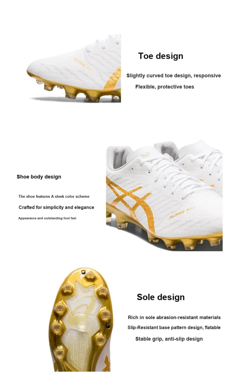 Asics DS LIGHT ACROS 2 DS LIGHT ACROS PRO 2 Устойчивые к истиранию Дышащие Футбольные бутсы Белый золотой
