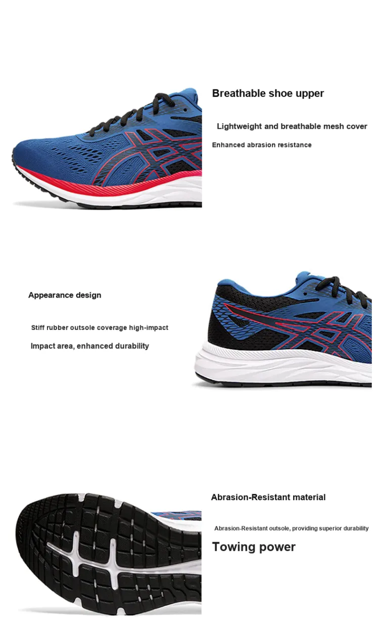 Asics Гель Excite Амортизация Легкий Дышащий Низкий Топ Беговые кроссовки Мужской Синий Красный