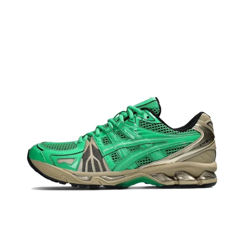 GmbH x ASICS Гель Kayano 14 Амортизация Устойчивость к истиранию Дышащий Низкий Топ Повседневные Беговые кроссовки Мужские Зеленый Золото