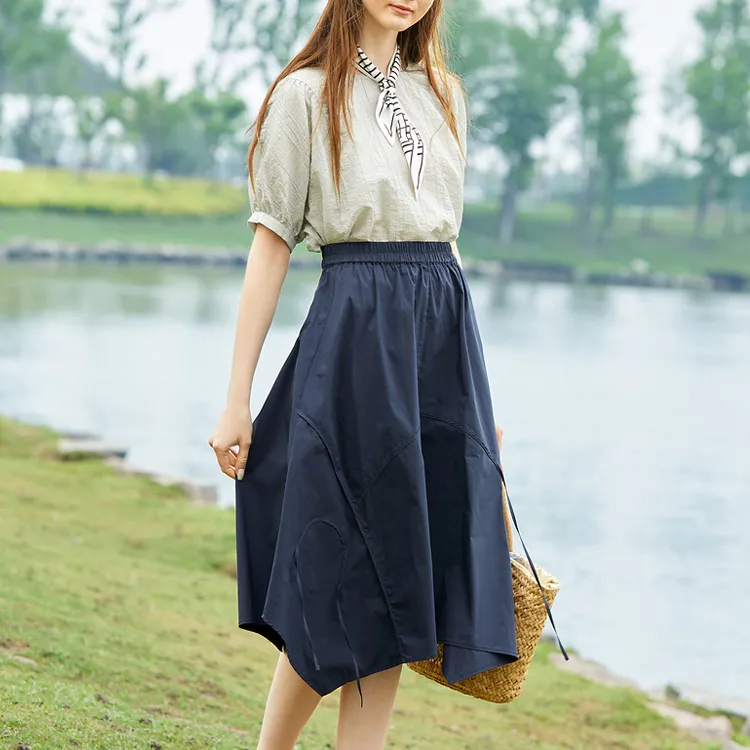 Asuka And New Sake Повседневный Длинный Юбка Женские Темно-синий Синий CH19