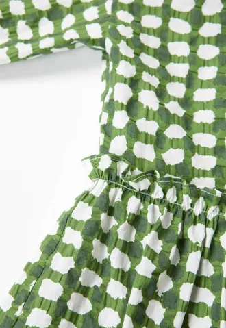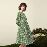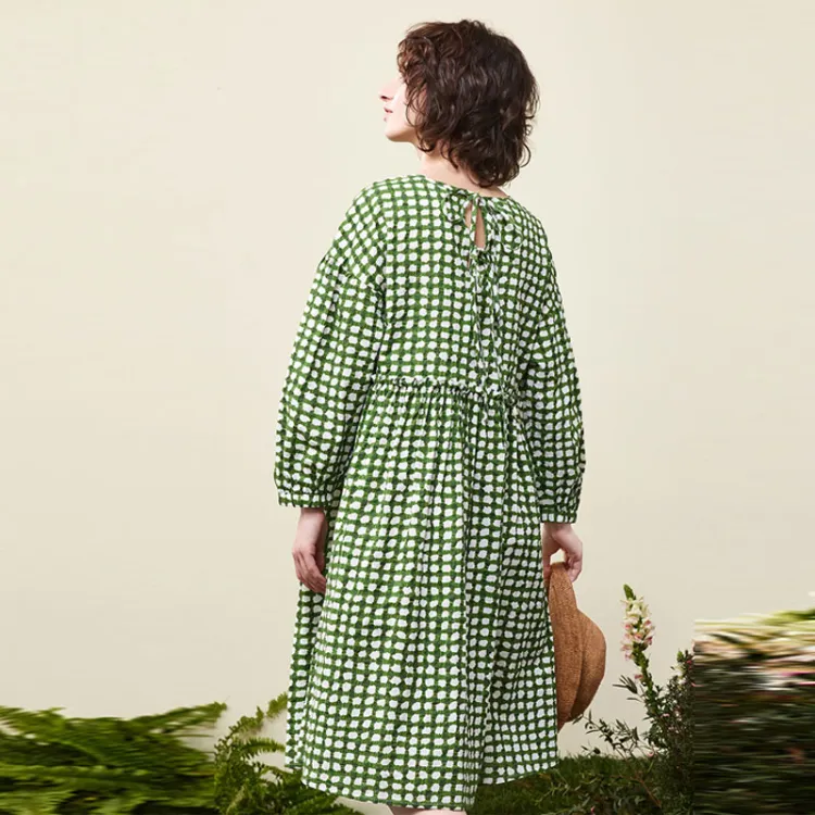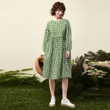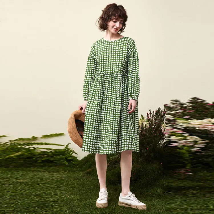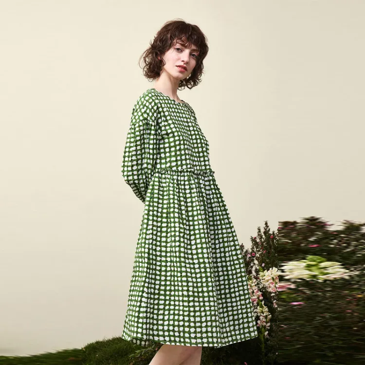 Asuka And New Sake Длинный рукав Платье Женское Полное покрытие Узор Изумрудно-зеленый