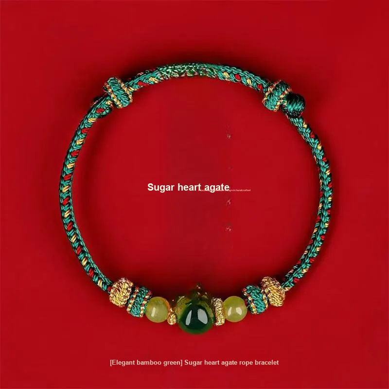 Стиль:Элегантный бамбук зеленый/карамель коричневый браслет с сердцем из агата на шнурке