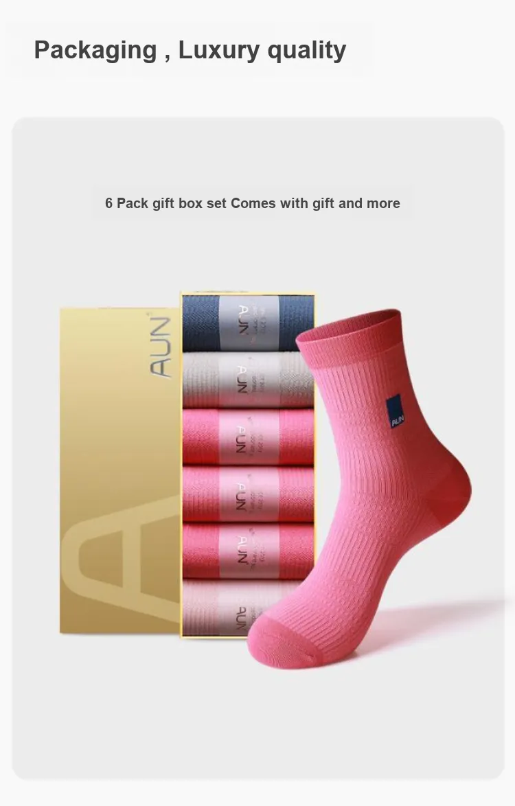AUN 6 пар Камелия Розовый+Розовый+Румяна Розовый+Коралловый Розовый+Серый+Синий Мужской MID Носки до икры