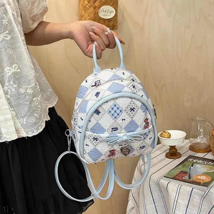 AUNG ПУ (полиуретан) Рюкзак Обычный Пузырьки Shan Пуговица Пузырьки Shan Пузырьково-голубой Розовая клетка