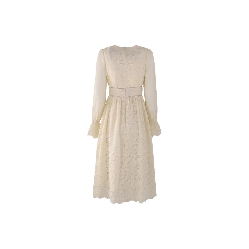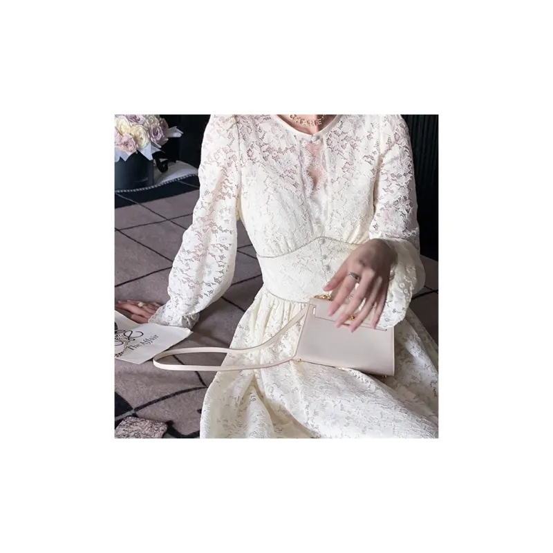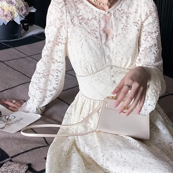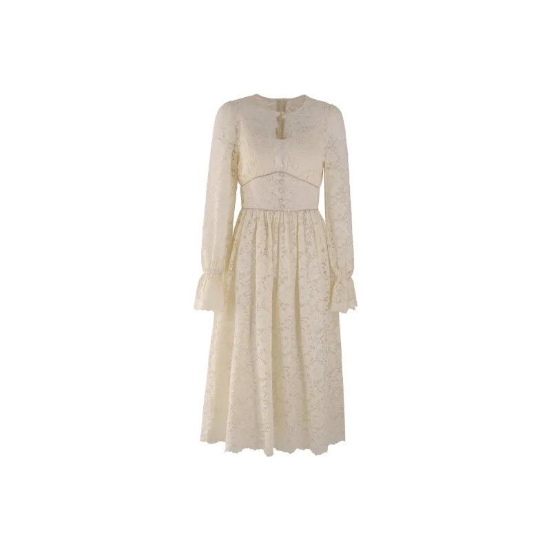 AUNTLUANDUNCLEZHUO Кружево Молочно-белый Женские Длинные Платья с Рукавами