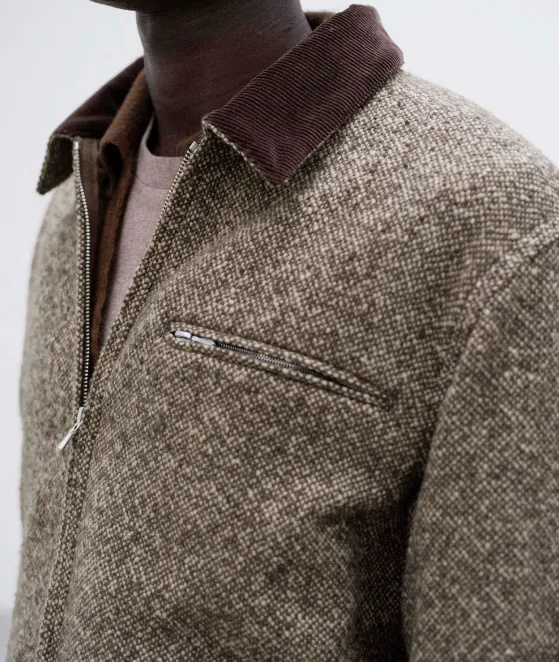 Auralee FW25 HOMESPUN Твид ZIP Блойзер Куртка Мужская