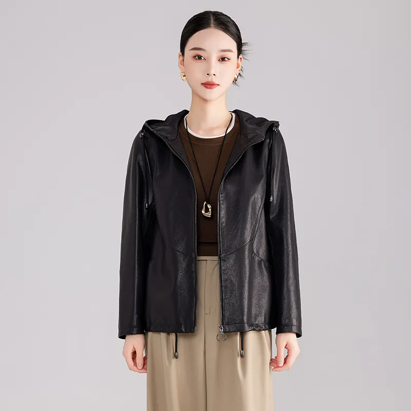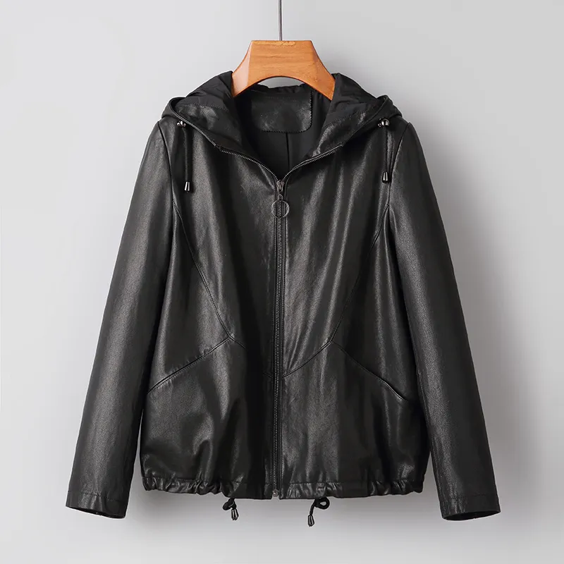 Черный, без подкладки, кожа, стиль, верхняя часть овечьей шкуры