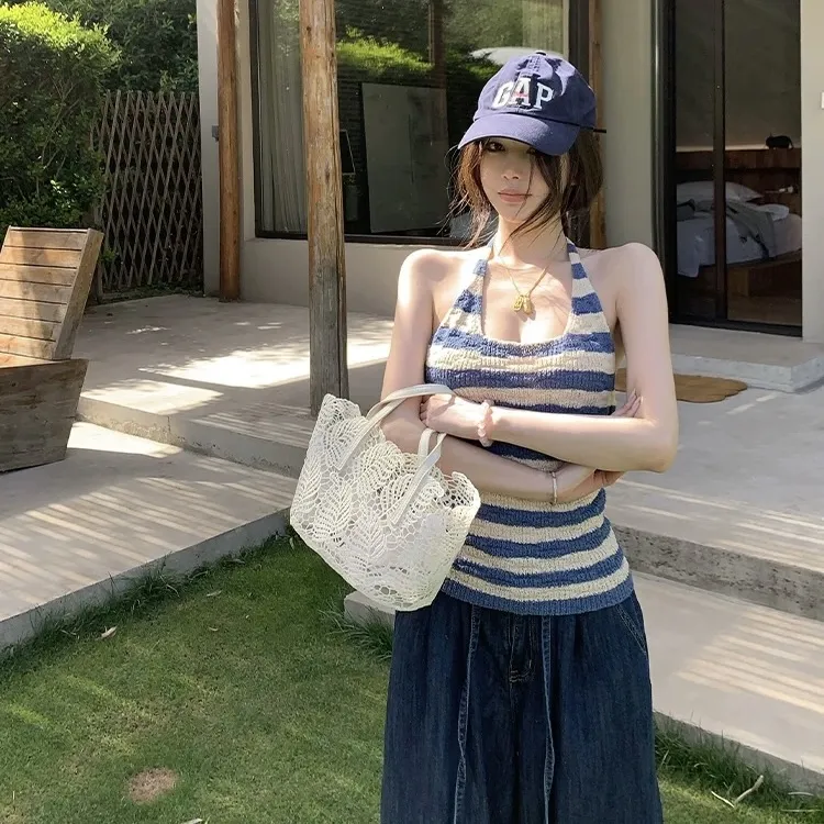 AURORA MUSE Темно-синий Полосы Женские Камисоли