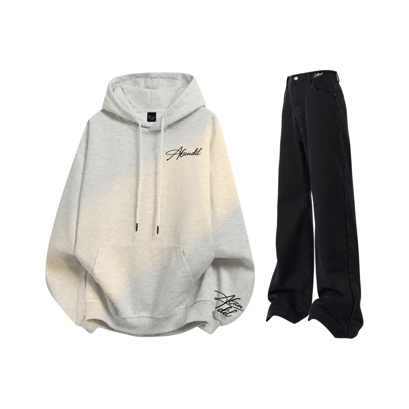 Комплект:Свитшот из фотинии серого цвета + черные джинсы