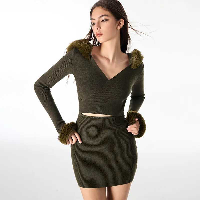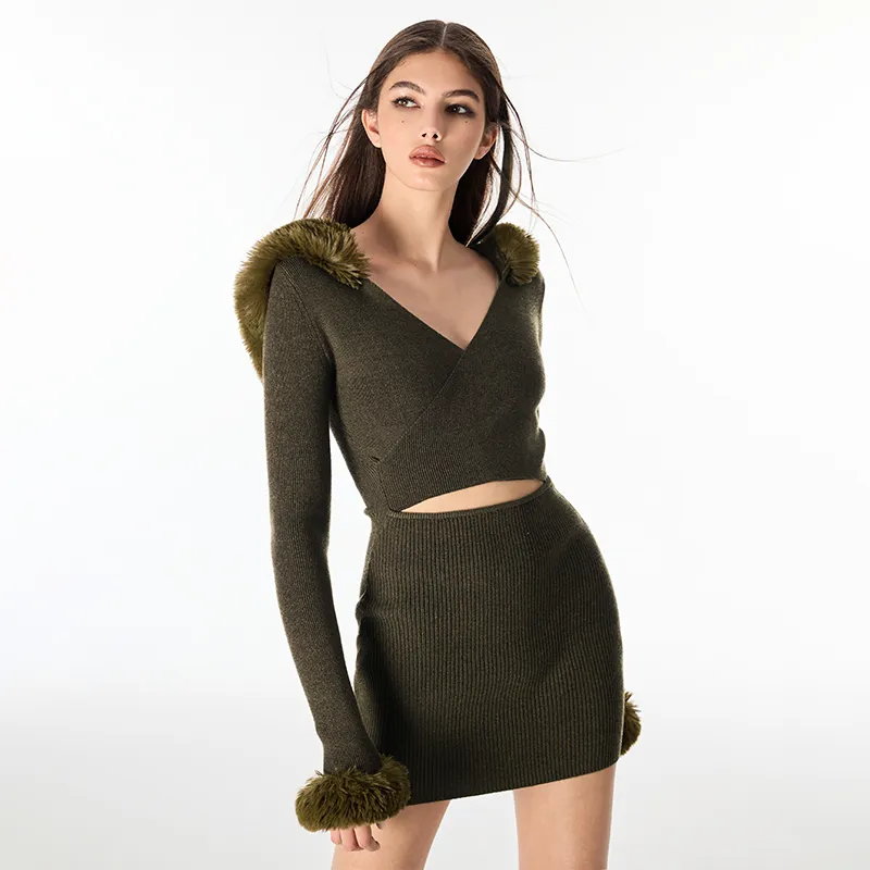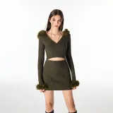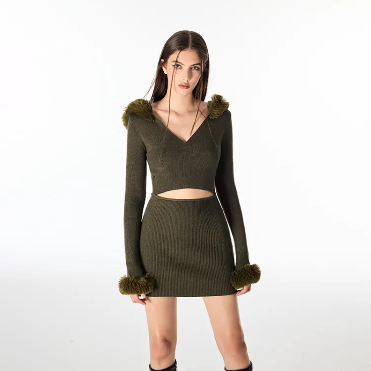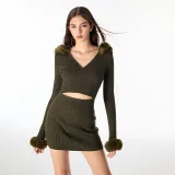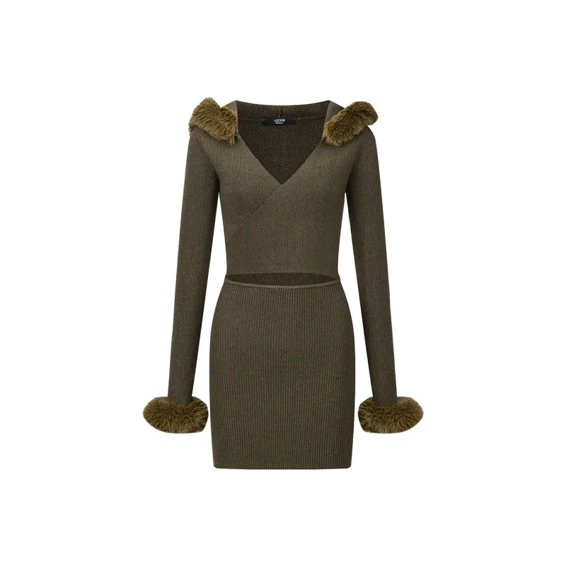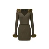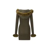AZEPAM Длинное платье с длинными рукавами женское темно-зеленое