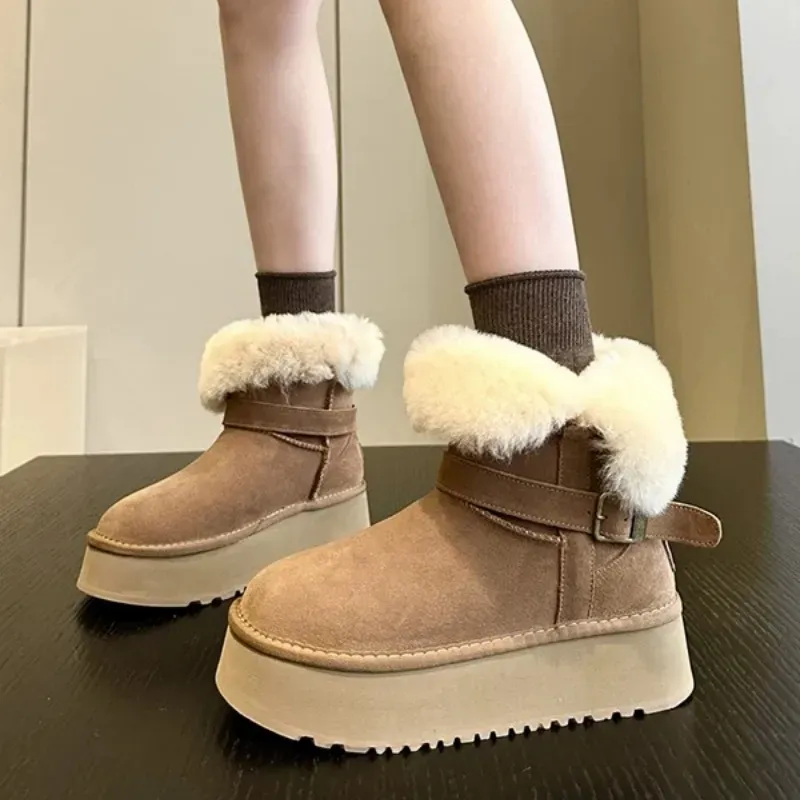 BABAKE С флисовой подкладкой обтрепанный край ботильоны термические устойчивые к абразиву короткие сноубутсы женские