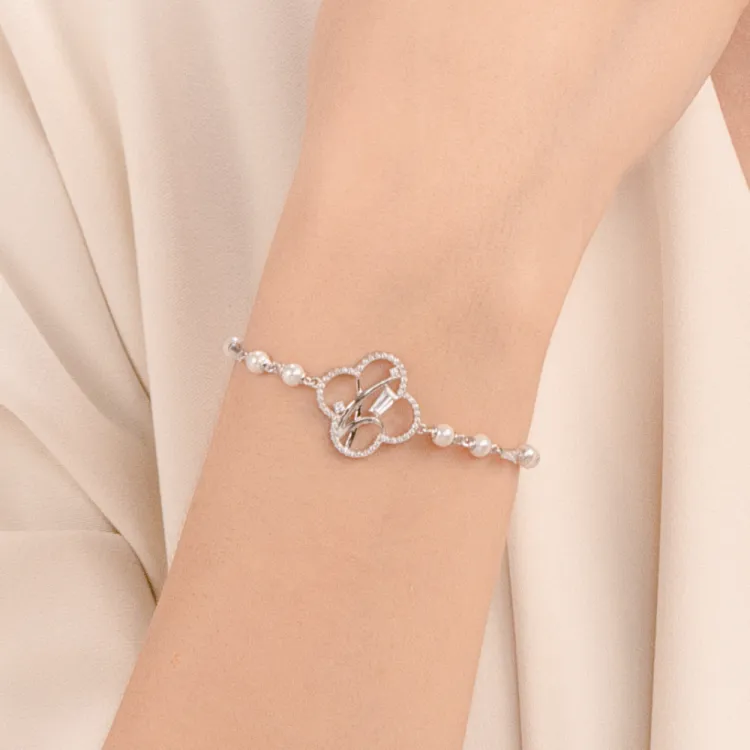 BABYBEI 925 стерлинговое серебро с 18К белым золотом покрытие жемчужная раковина синтетический кубический цирконий браслеты для женщин