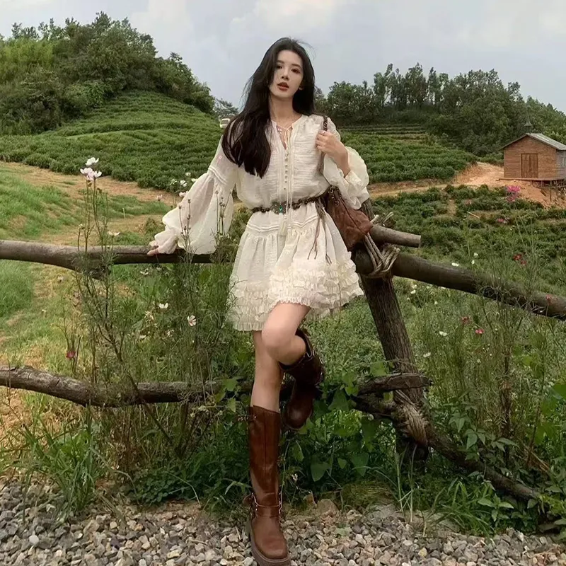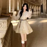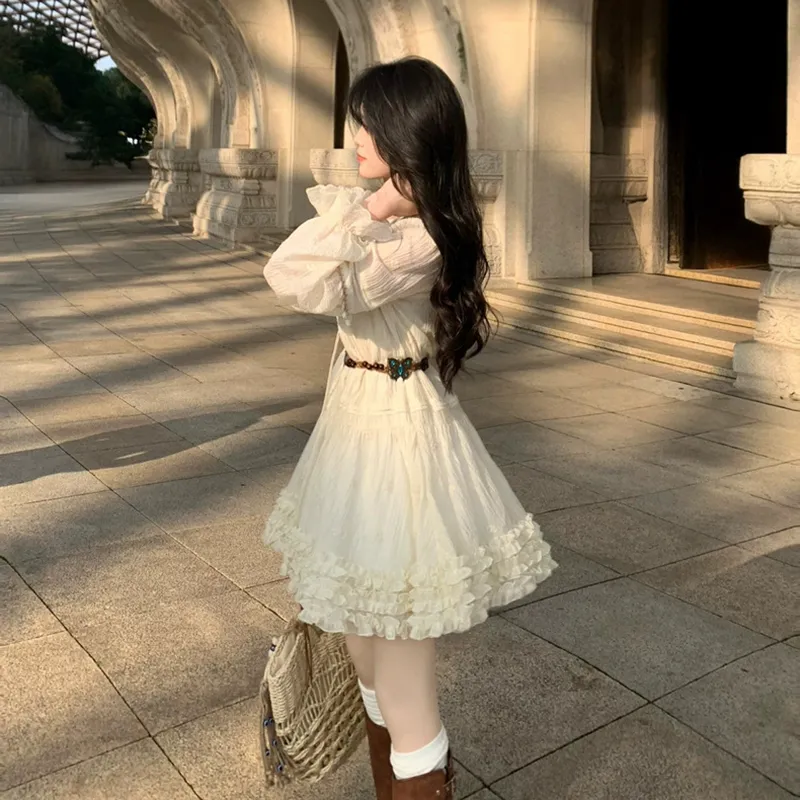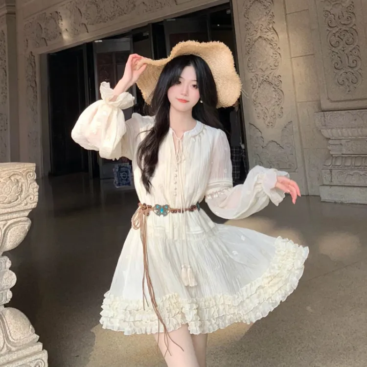 Цвет:Абрикосовое платье с длинными рукавами и укороченным кроем