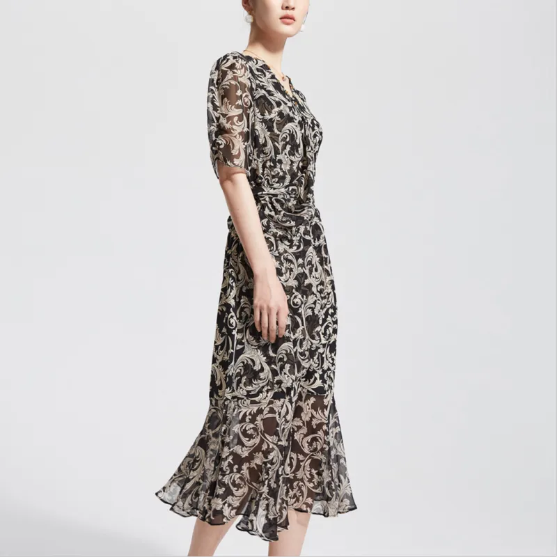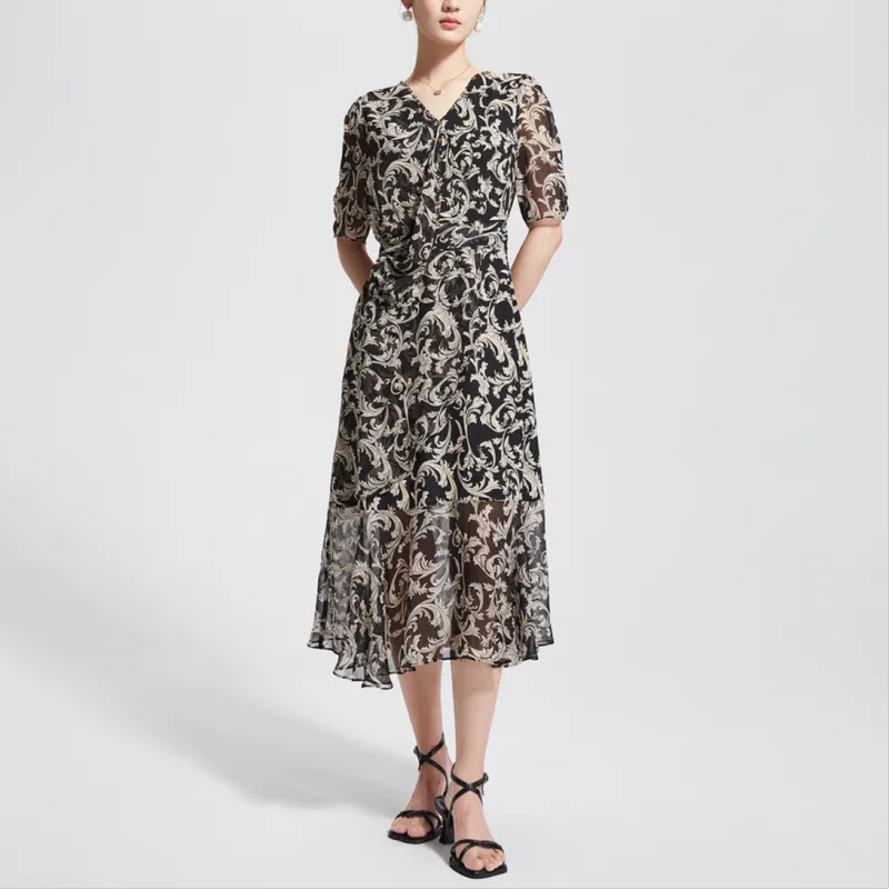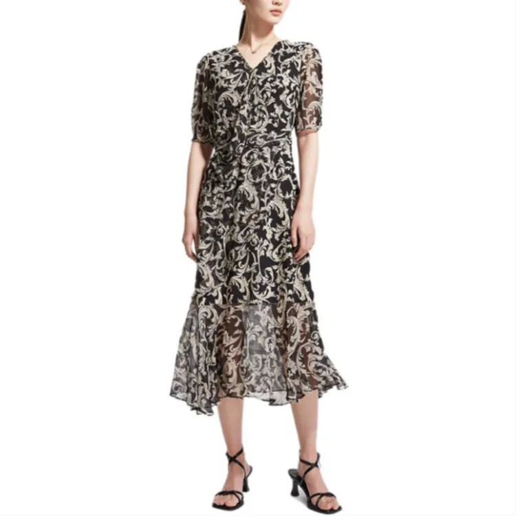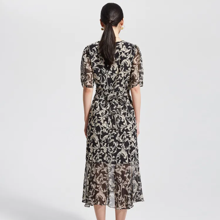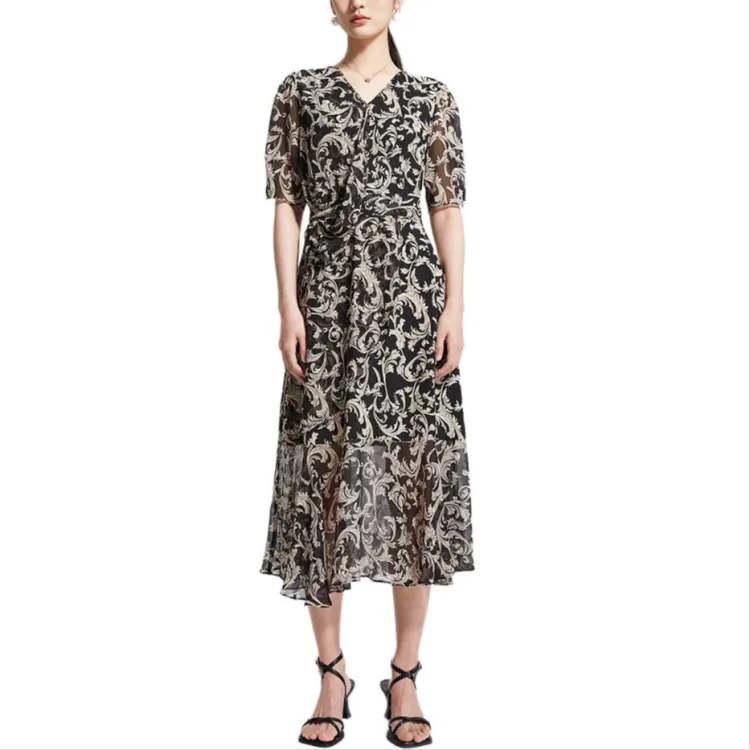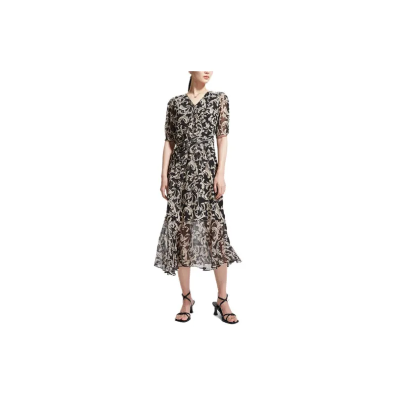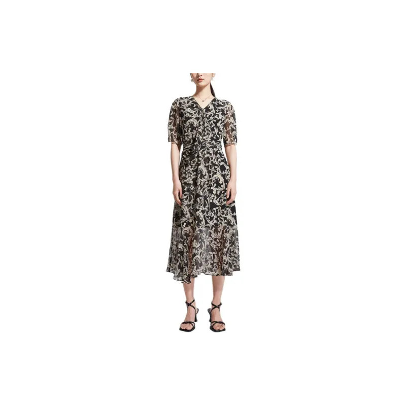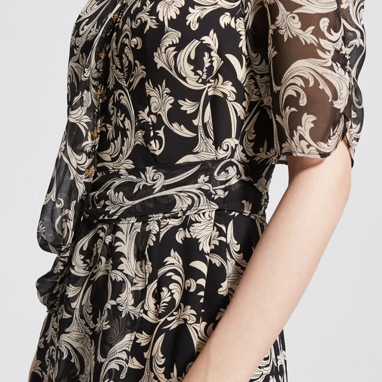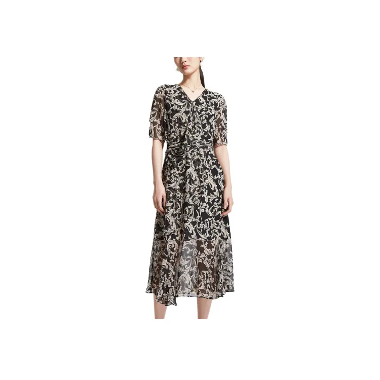 Badgley Mischka Короткий рукав Платье Женское Черный Цветочный