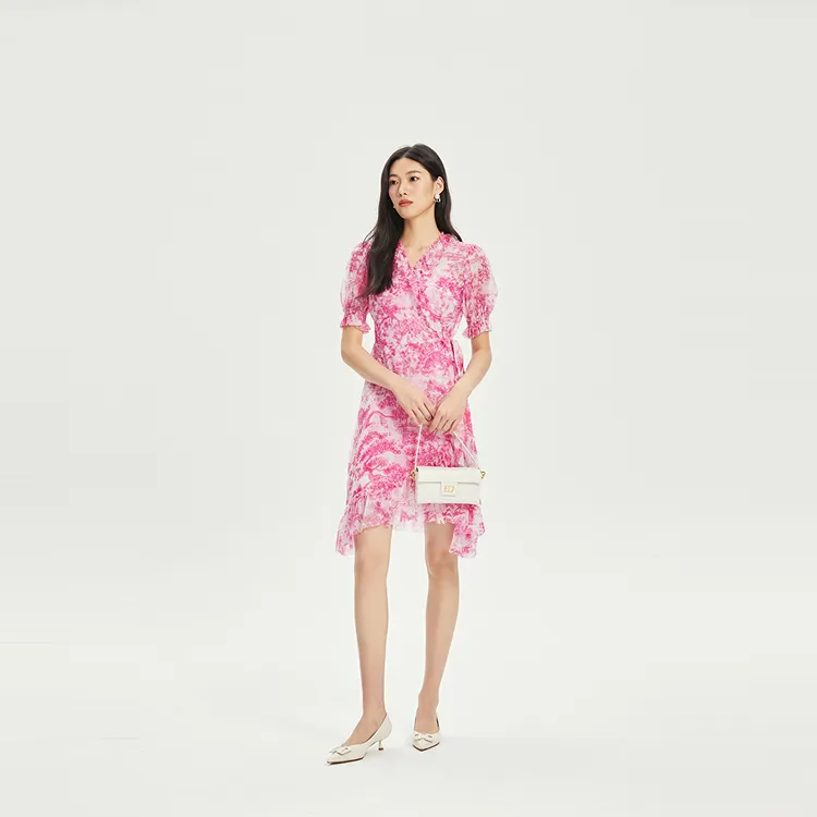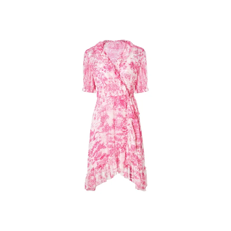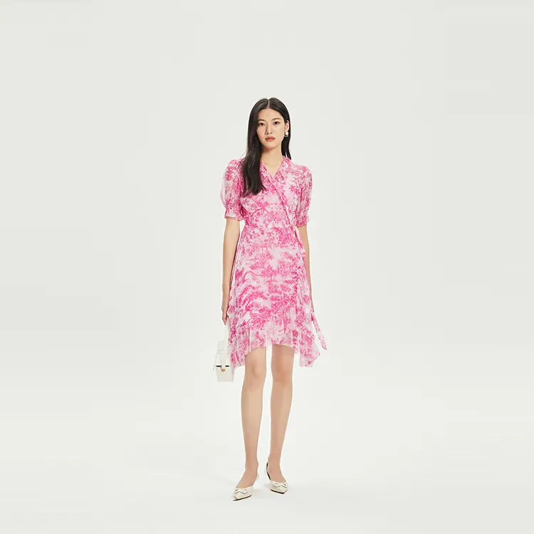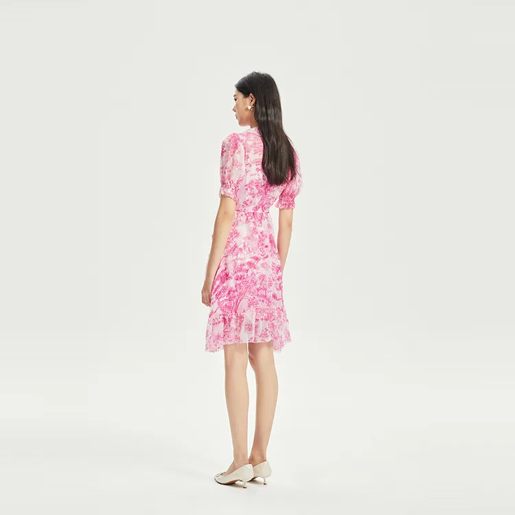 BADINA Короткий рукав Платье Женское Розовый с принтом
