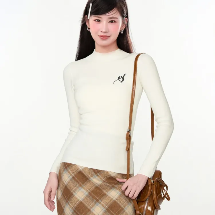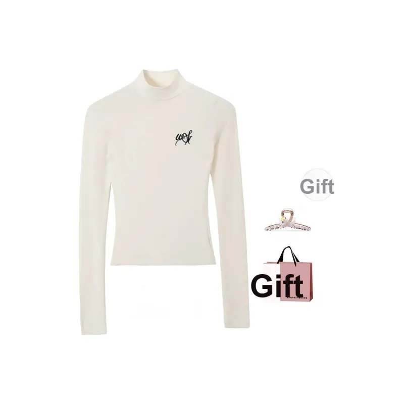 BAIDAIFEI Белый топ + Эксклюзивная сумка для покупок + Заколка-краб Женская трикотаж