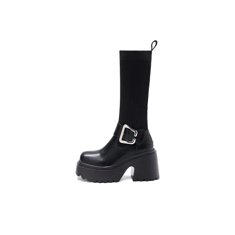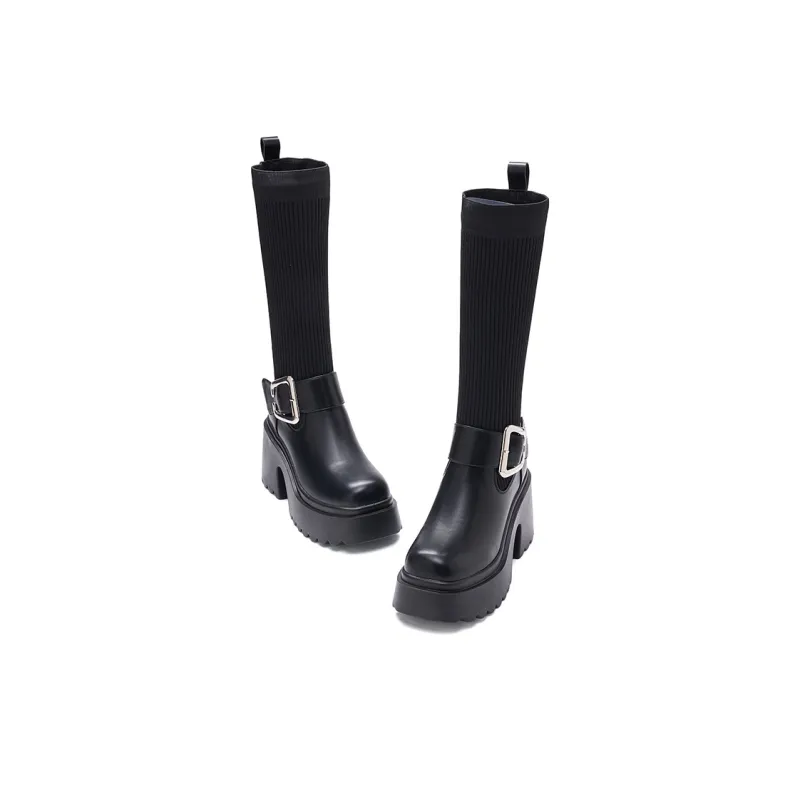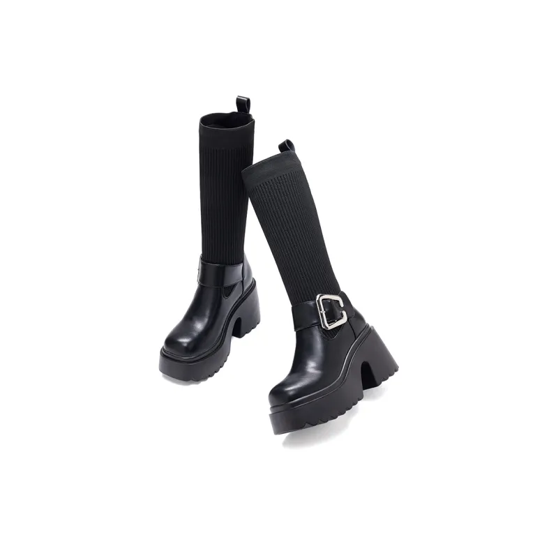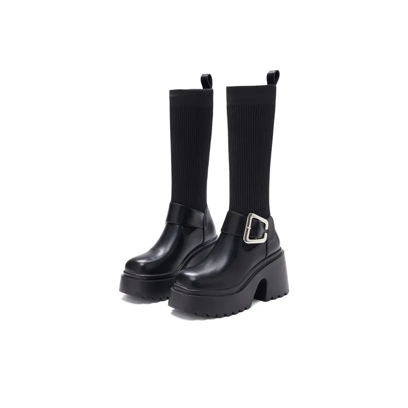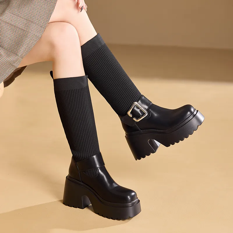BAIJIHONG Высокие сапоги до колена 8 см женские черные