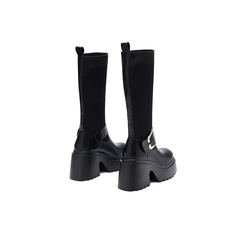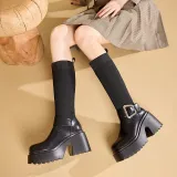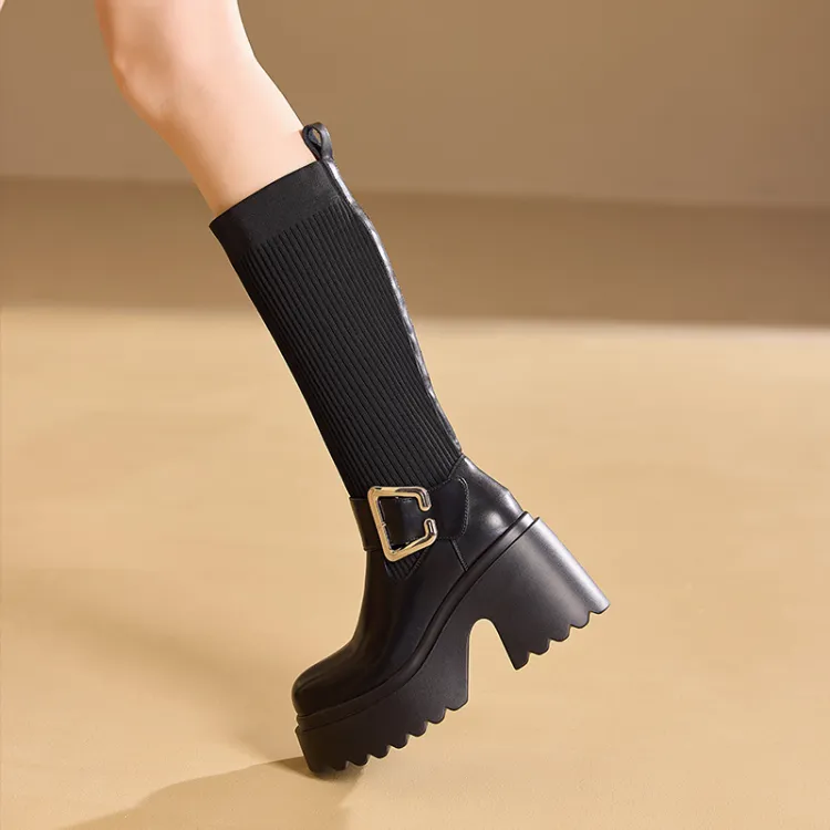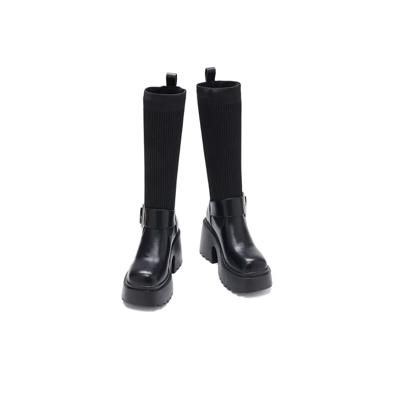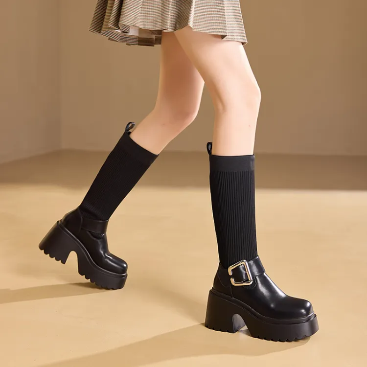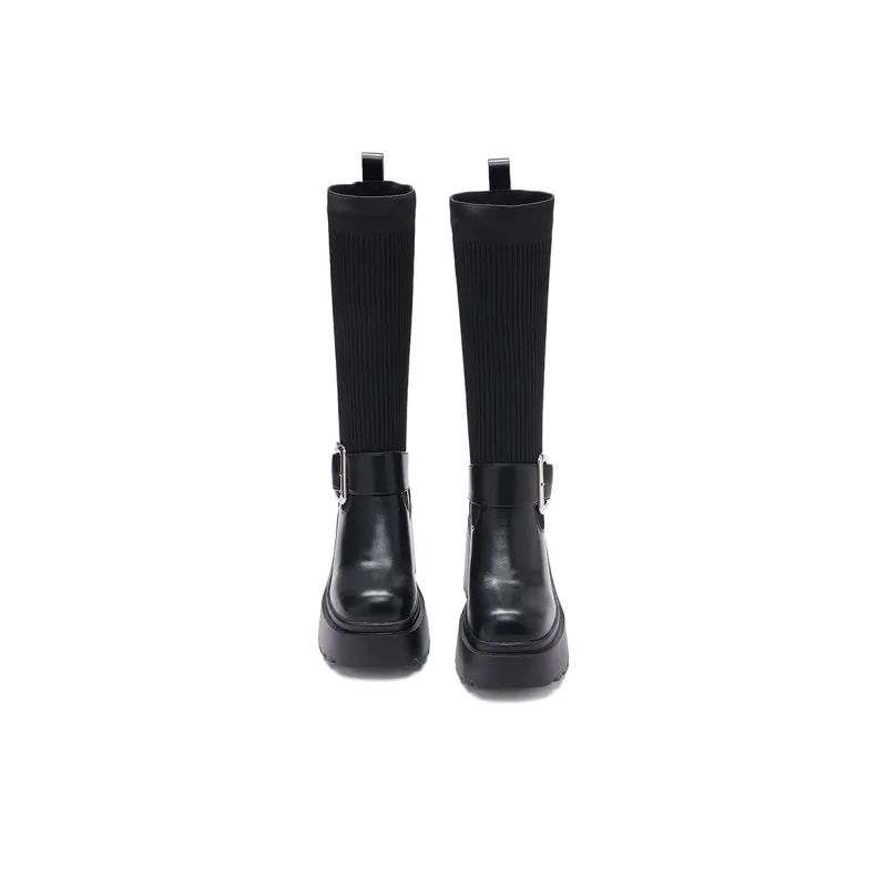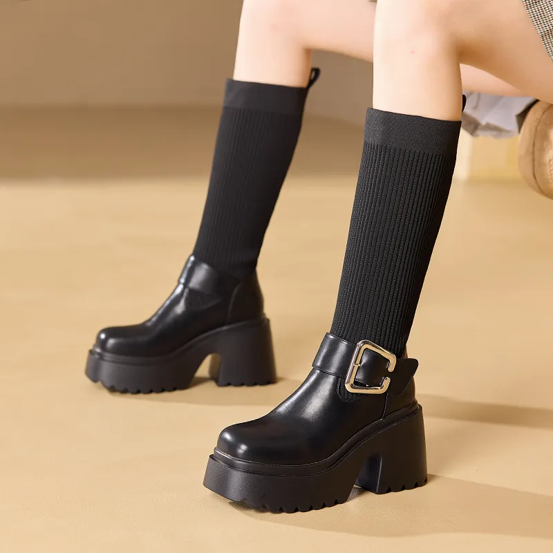 BAIJIHONG Высокие сапоги до колена 8 см женские черные