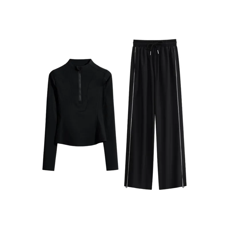 Комплект:Двухкомпонентный комплект (Черный топ с длинным рукавом + Черные штаны)