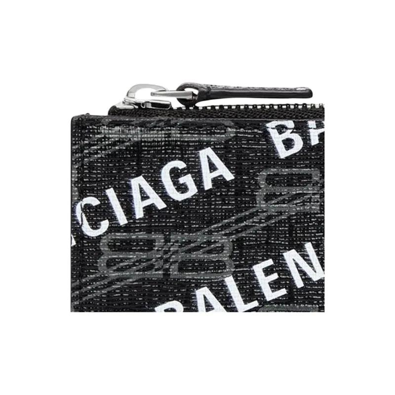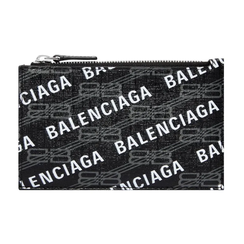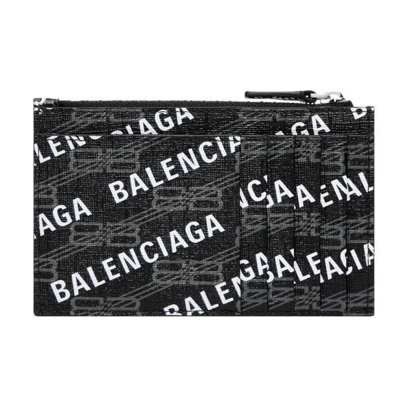 Balenciaga BB MONOGRAM Коровья кожа Кошелек для монет держатель для карт большой женский черный