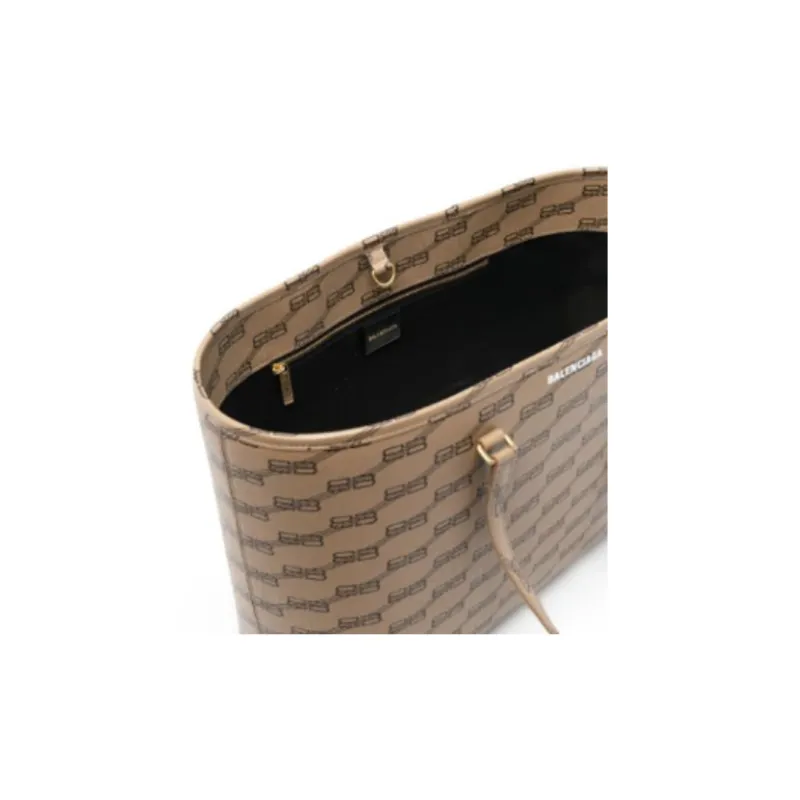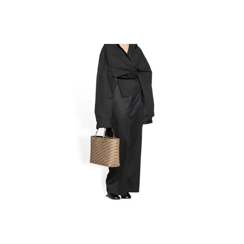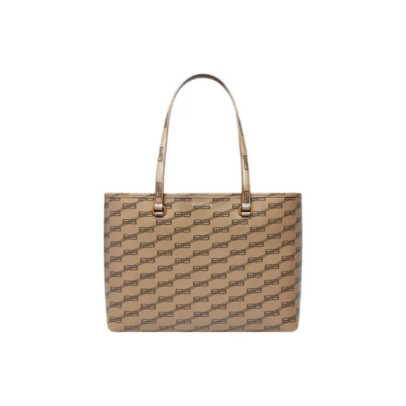 Balenciaga Покрытый холст с материалами Tote Сумка Сумка для покупок Сумка на плечо Женская Бежевая