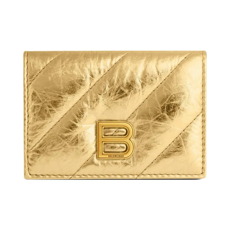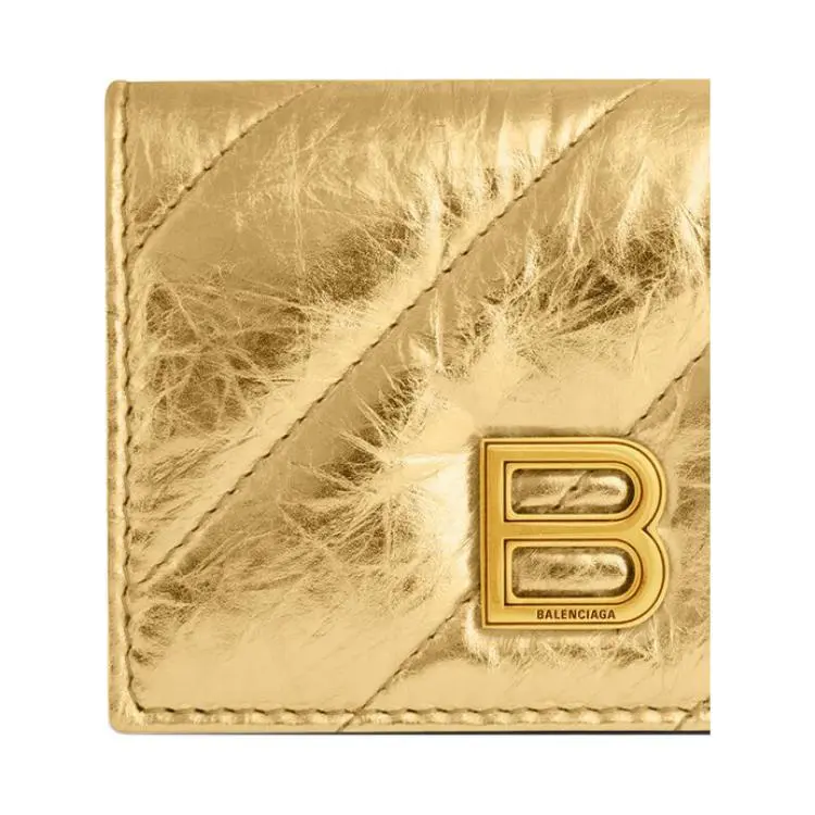 Balenciaga Crush Телячья кожа Кошелек Держатель для карт Стандартный Женский Золотой