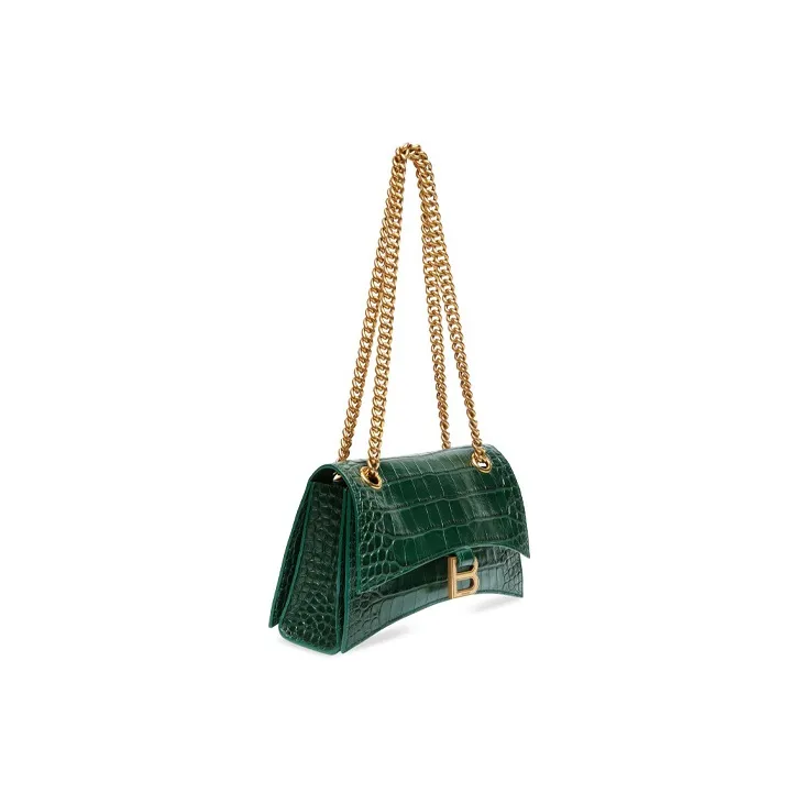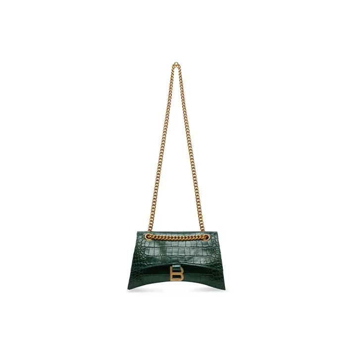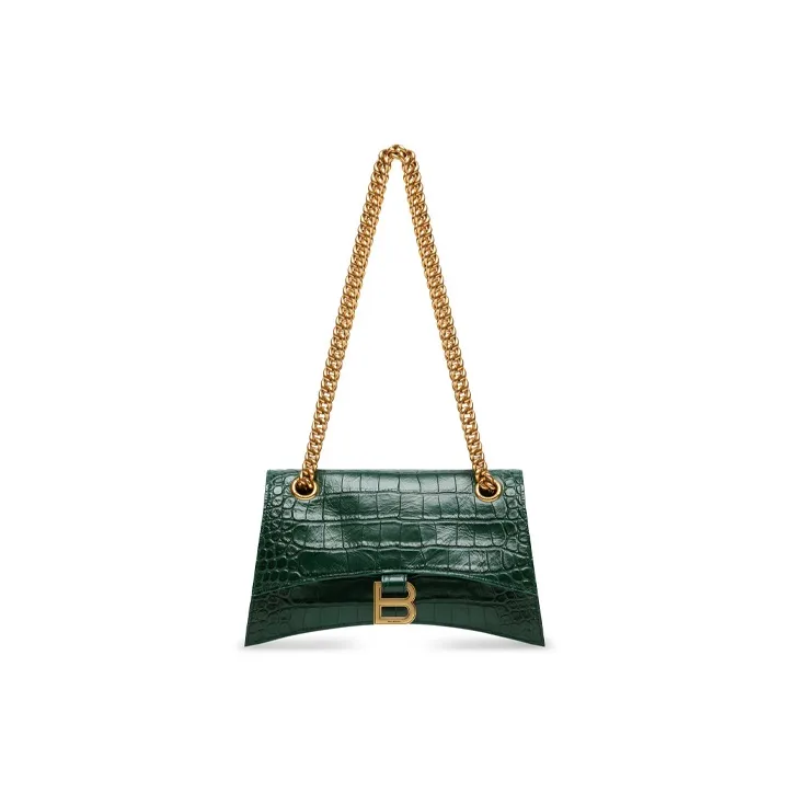 Balenciaga Crush Крокодиловый узор Тисненый Телячья кожа Портативный Сумка через плечо Сумка на плечо Женская Лесной зеленый