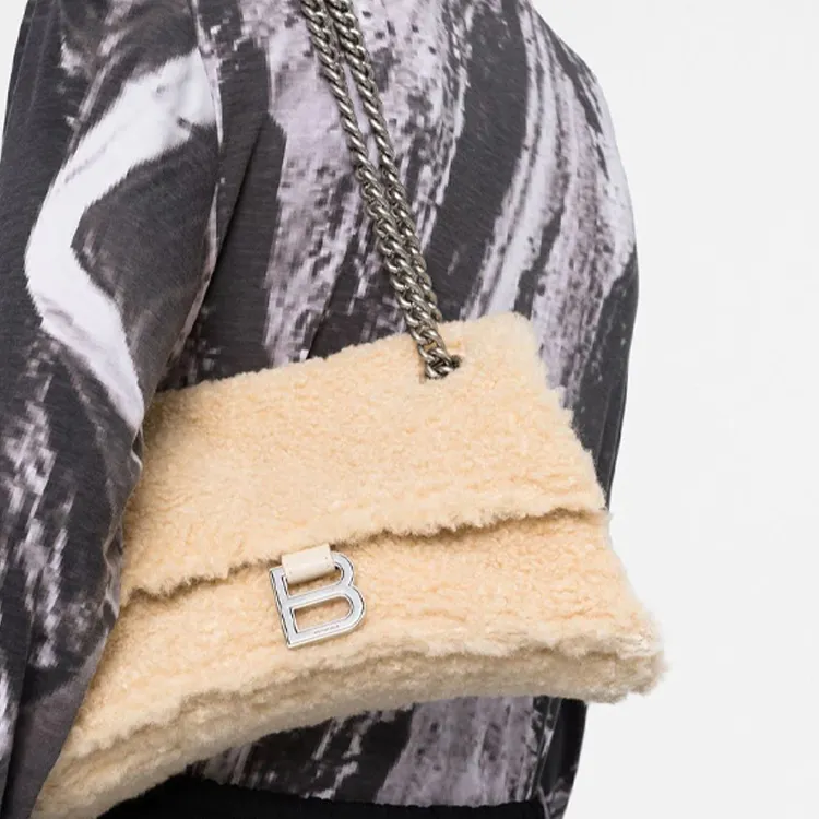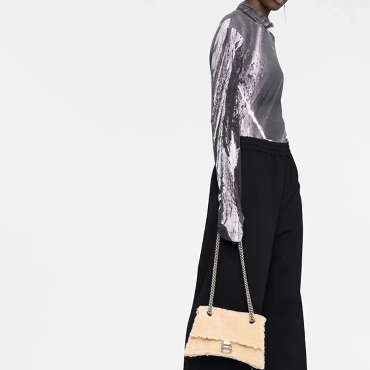 Balenciaga Crush Телячья кожа Сумка через плечо сумка Женская Бежевая