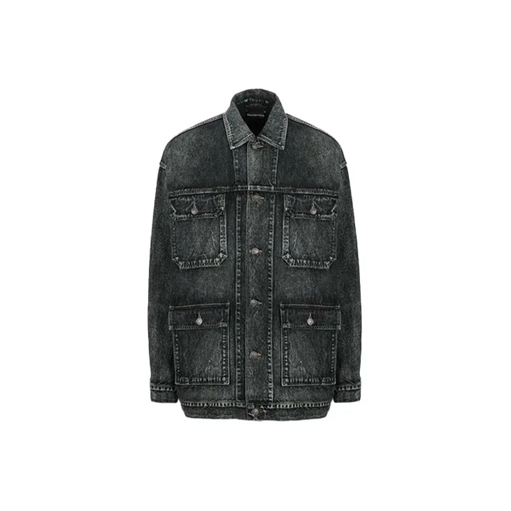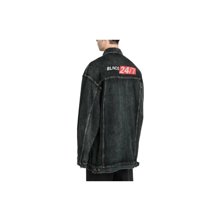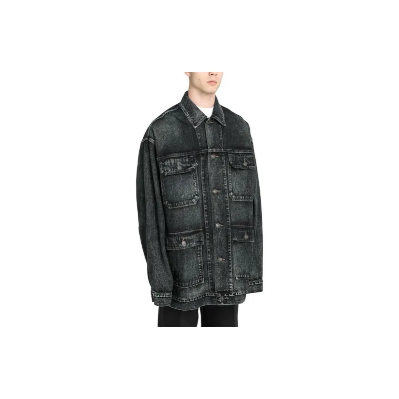 Balenciaga Denim Jacket Loose Fit Men's Black Gray Баленсиага Деним Куртка Свободный крой Мужской Черный Серый