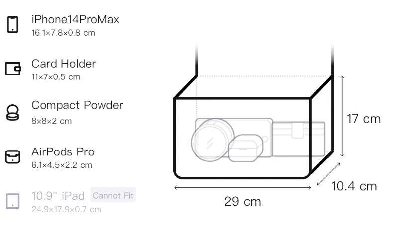 Д29*Ш10,4*В17см