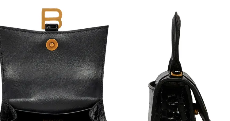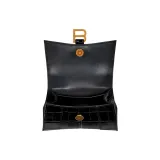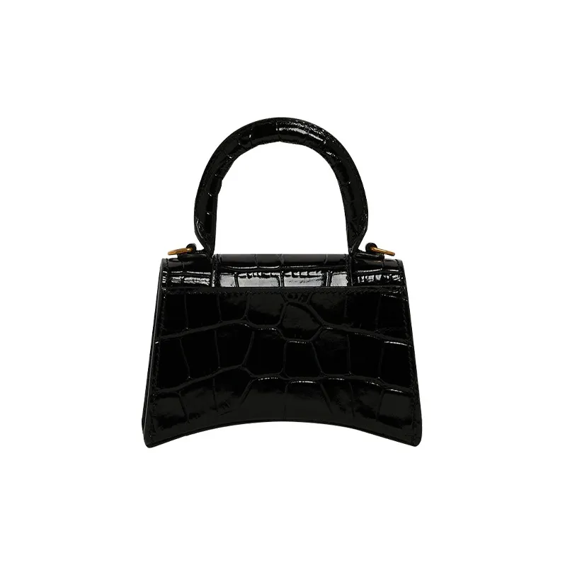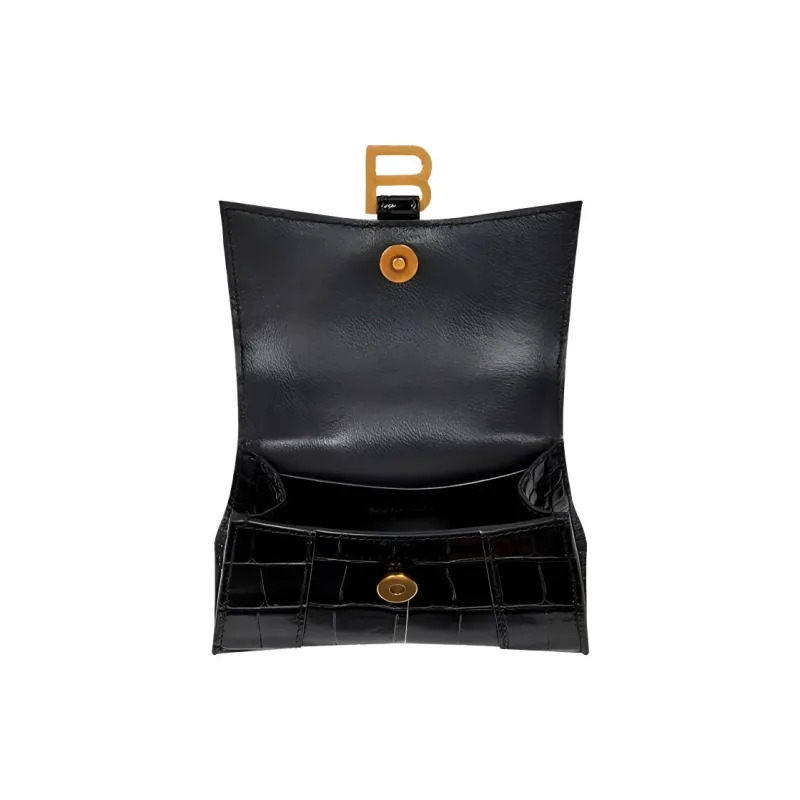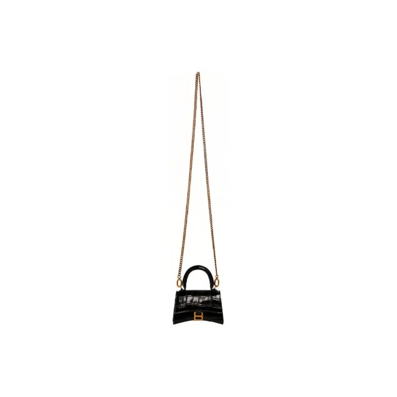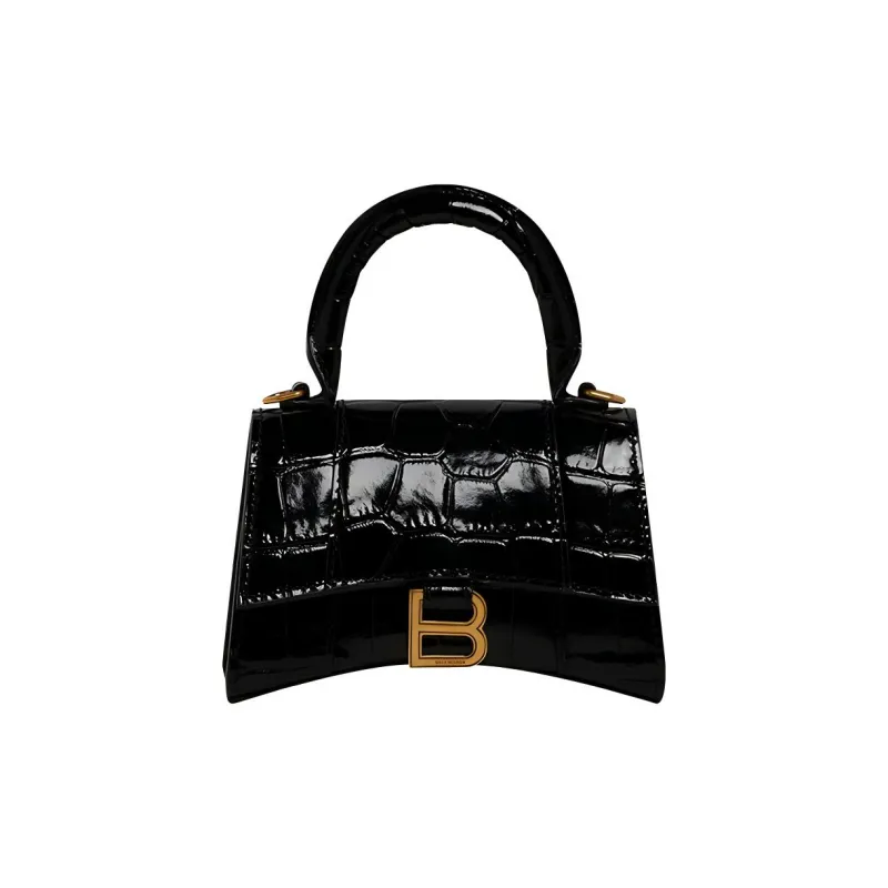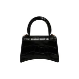 Balenciaga HOURGLASS Корова Кожа Тисненая Сумка Hourglass Сумка через плечо Ручная сумка Сумка через плечо Мини Женская Черная