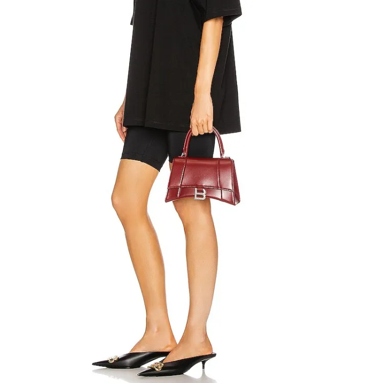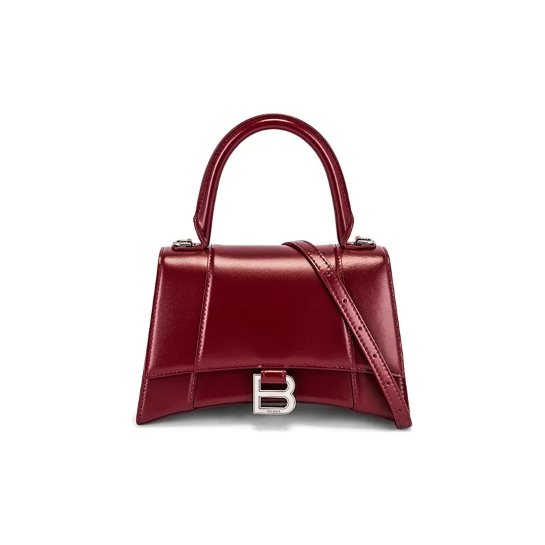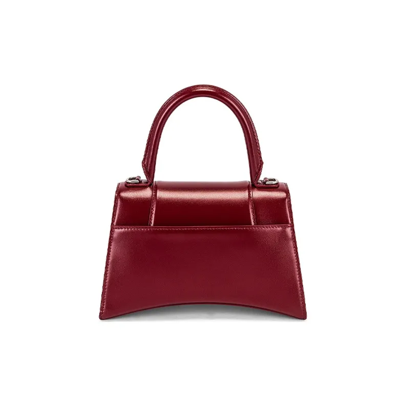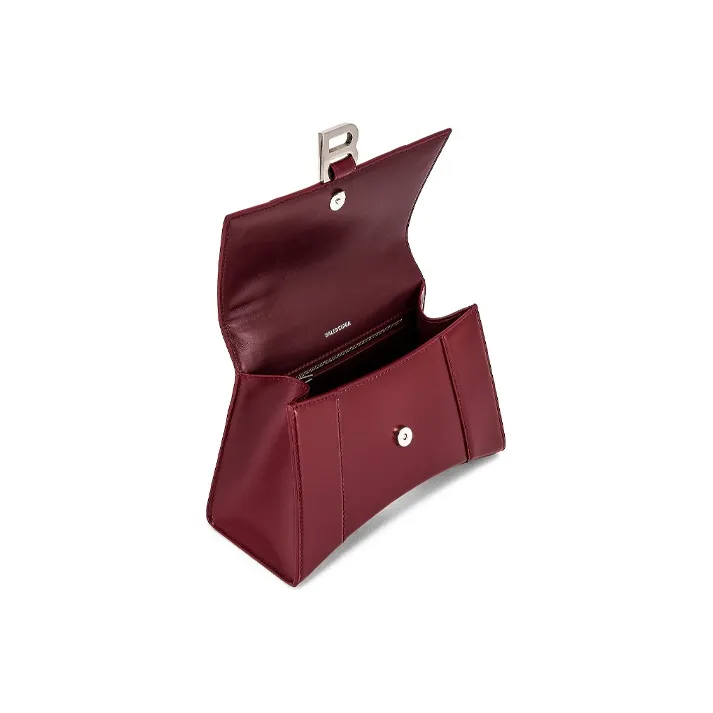 Balenciaga HOURGLASS Корова Кожа Одно Плечо Ручная Сумка Сумка через плечо Маленькая Темно-Красная Бургунди