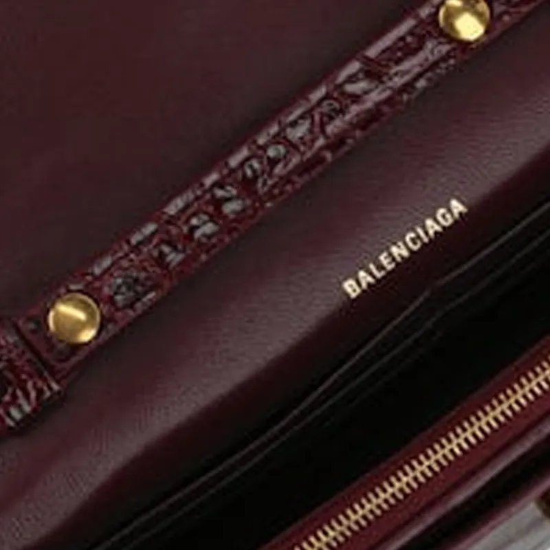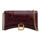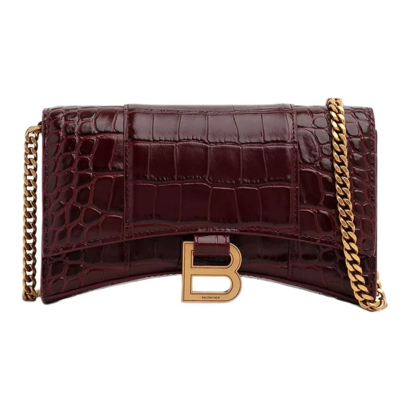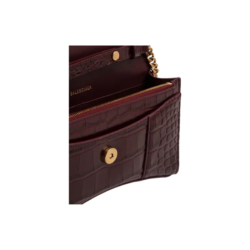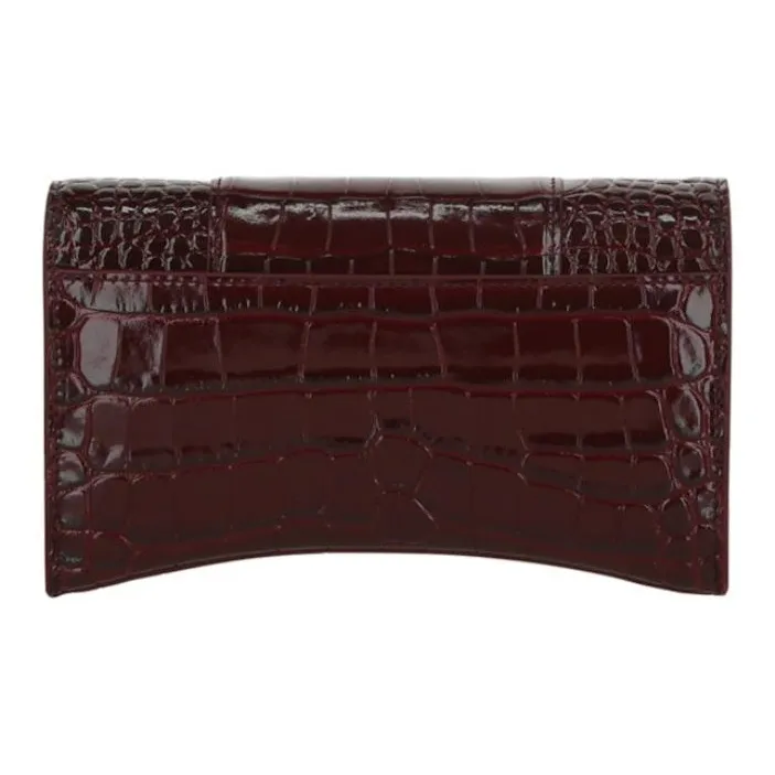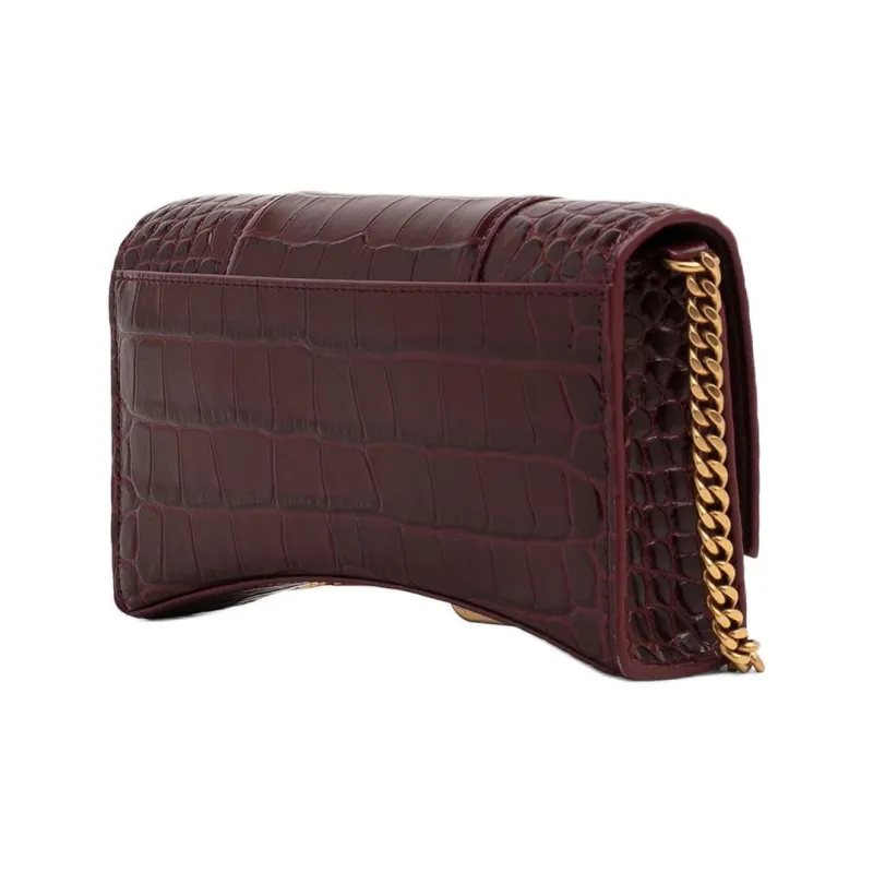 Balenciaga HOURGLASS Крокодил Тисненая кожа Сумка через плечо Кошелек Женские Бургунди