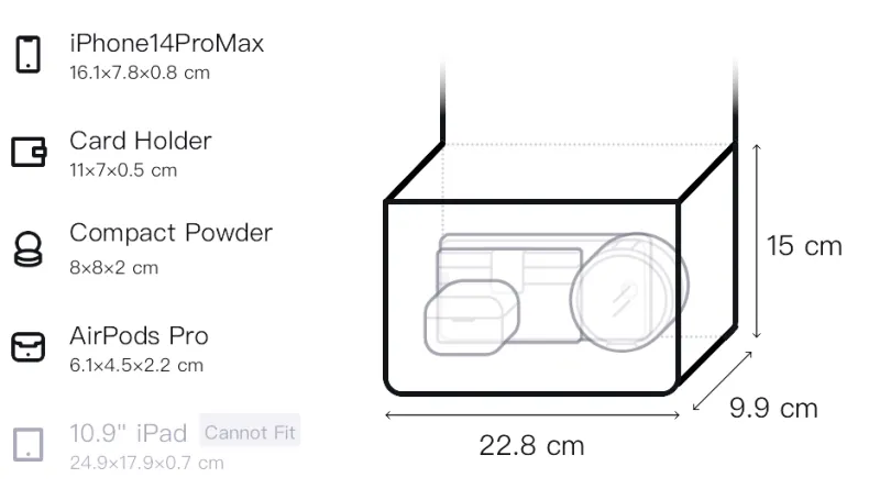 Д22,8*Ш9,9*В15см
